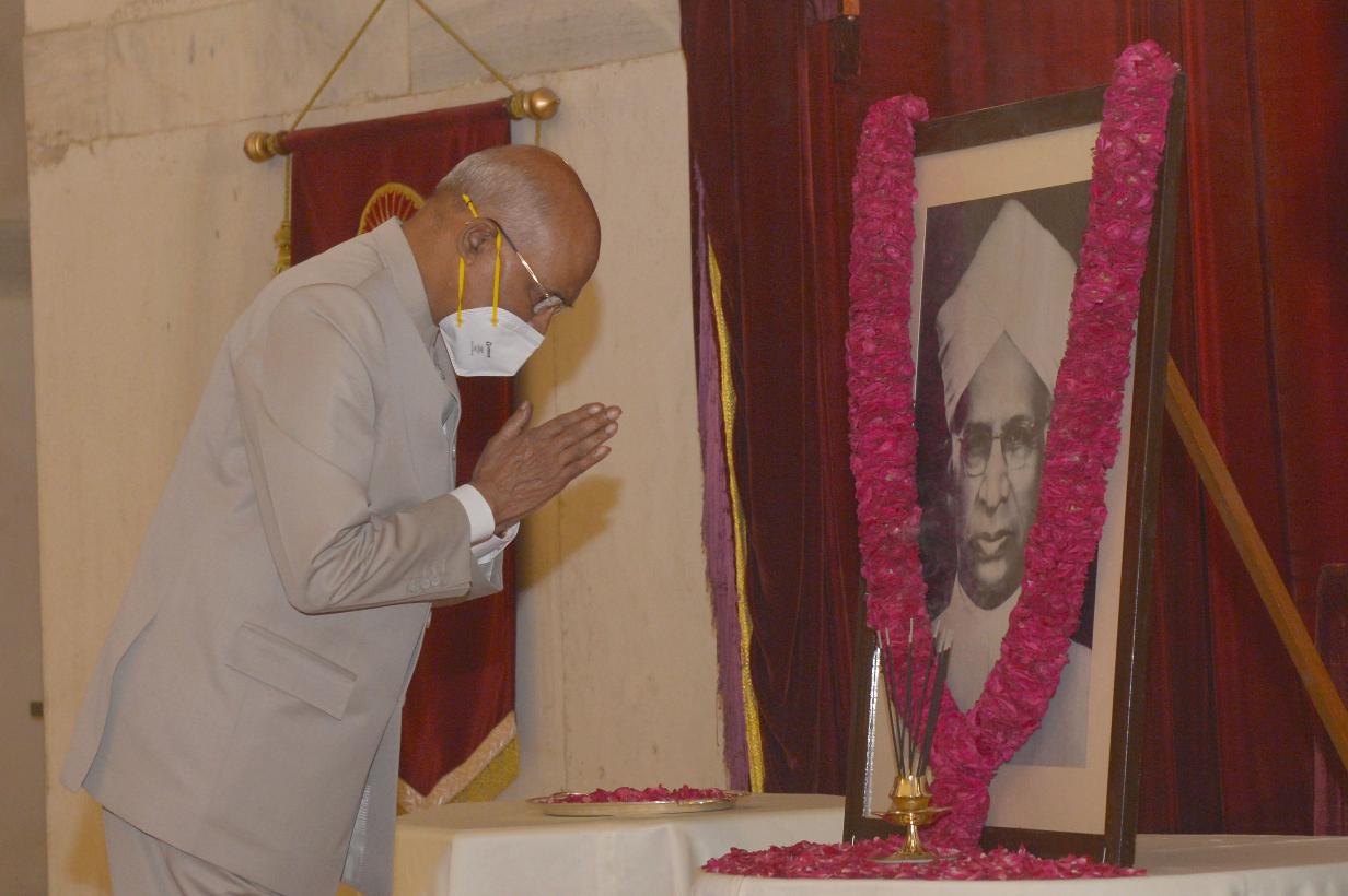 | Caption: | The President of India, Shri Ram Nath Kovind paying floral tributes to Dr. Sarvepalli Radhakrishnan, former President of India, on his birth anniversary, at Rashtrapati Bhavan on September 05, 2020. |