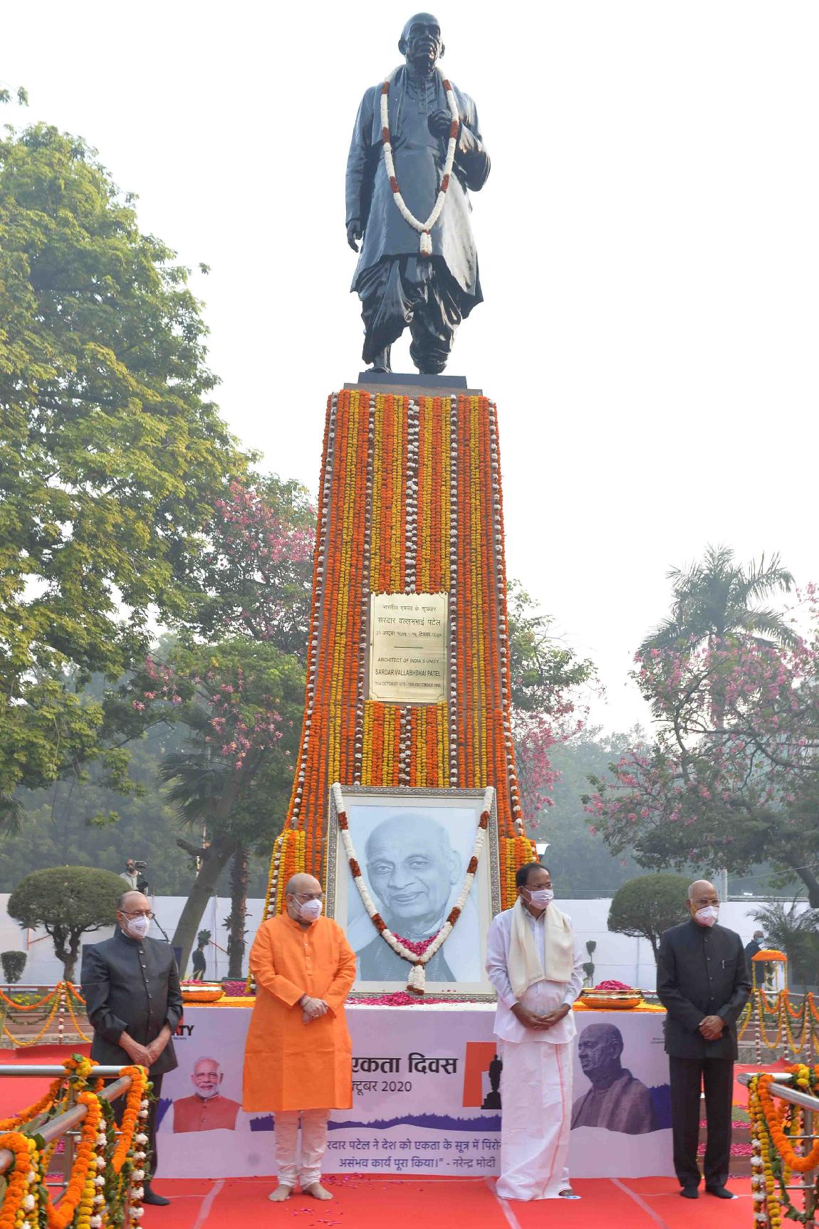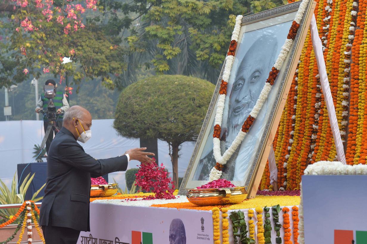 | Caption: | The President of India, Shri Ram Nath Kovind paying floral tributes to Sardar Vallabhbhai Patel on his birth anniversary, at Sardar Patel Chowk, in New Delhi on October 31, 2020. |