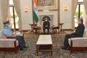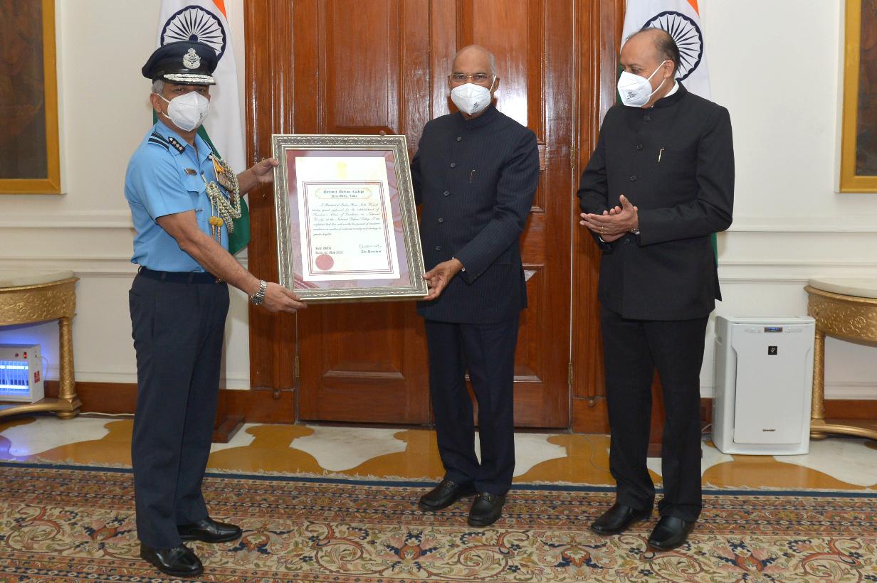 | Caption: | Dr. Ajay Kumar, Defence Secretary and Air Marshal D. Choudhury, Commandant, National Defence College meeting with the President of India, Shri Ram Nath Kovind, at Rashtrapati Bhavan on November 11, 2020. |