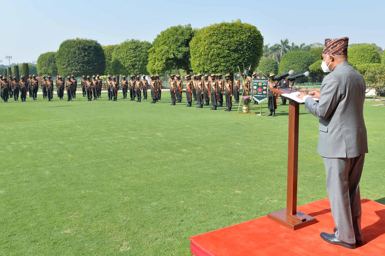 | Caption: | The President of India, Shri Ram Nath Kovind interacting with the troops of the 5th Battalion of the 1st Gorkha Rifles, at Rashtrapati Bhavan on November 28, 2020. |