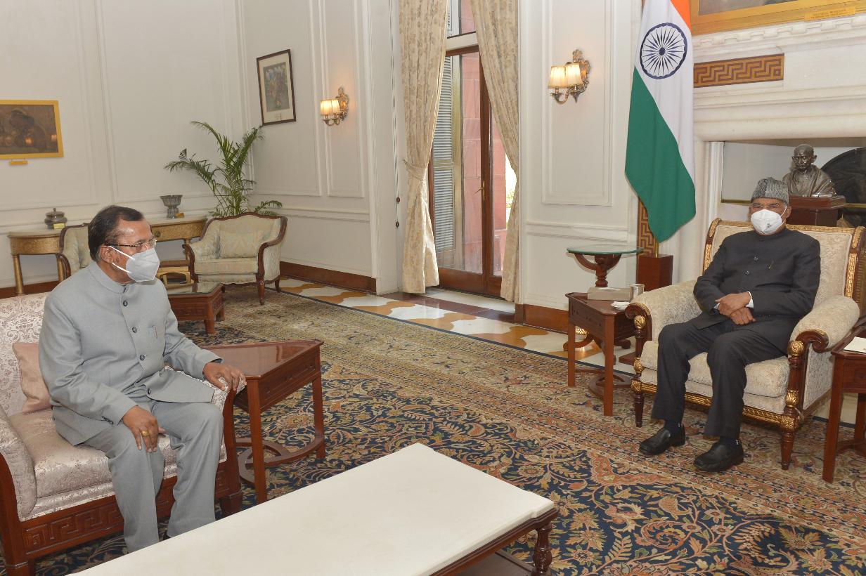| Caption: | The Minister of State for Commerce and Industry, Shri Som Prakash meeting with the President of India, Shri Ram Nath Kovind, at Rashtrapati Bhavan on December 10, 2020. |
