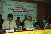 | Caption: | The President of India, Dr A P J Abdul Kalam visiting the Maulana Azad National Urdu University at Hyderabad in Andhra Pradesh on March 15, 2003 |