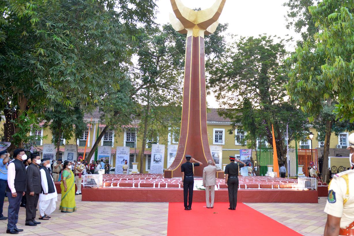 | Caption: | The President of India, Shri Ram Nath Kovind paying tributes to the martyrs of Goa's liberation struggle by laying wreath at the Martyr's Memorial, Azad Maidan, in Panaji on December 19, 2020. |