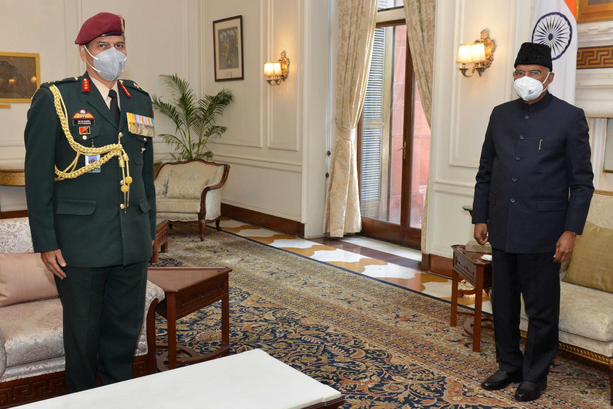 | Caption: | Lt. Gen. SS Hasabnis, Deputy Chief of Army Staff ( Planning & Systems) meeting with the President of India, Shri Ram Nath Kovind, at Rashtrapati Bhavan on December 22, 2020. |