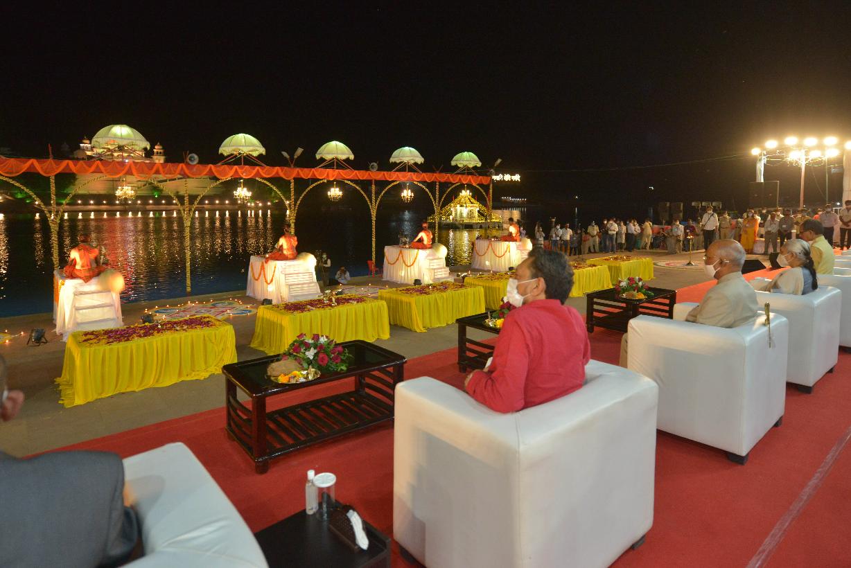 | Caption: | The President of India, Shri Ram Nath Kovind attending Sandhya Aarti Puja, at Gwarighat, on the banks of River Narmada, in Jabalpur on March 06, 2021. |