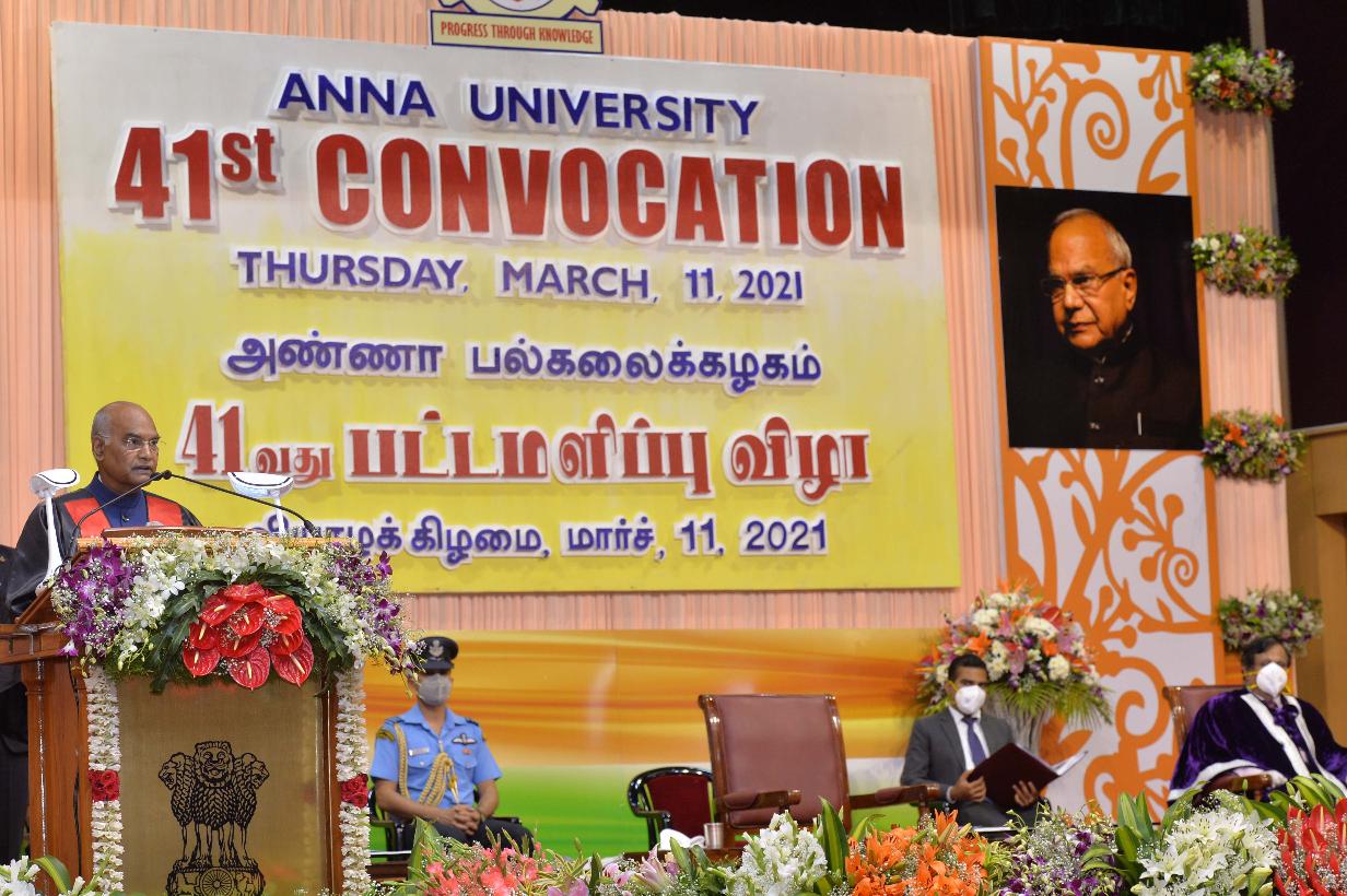 | Caption: | The President of India, Shri Ram Nath Kovind gracing the 41st annual convocation of Anna University, in Chennai on March 11, 2021. |