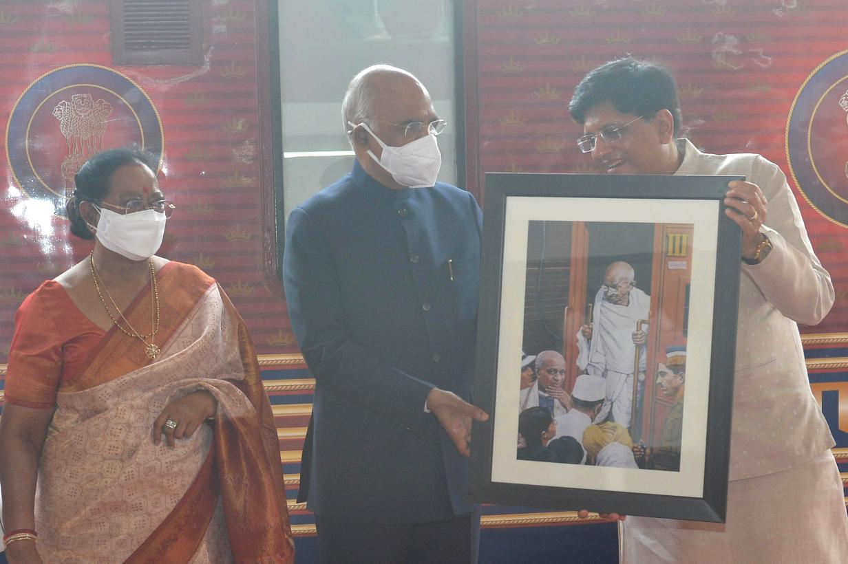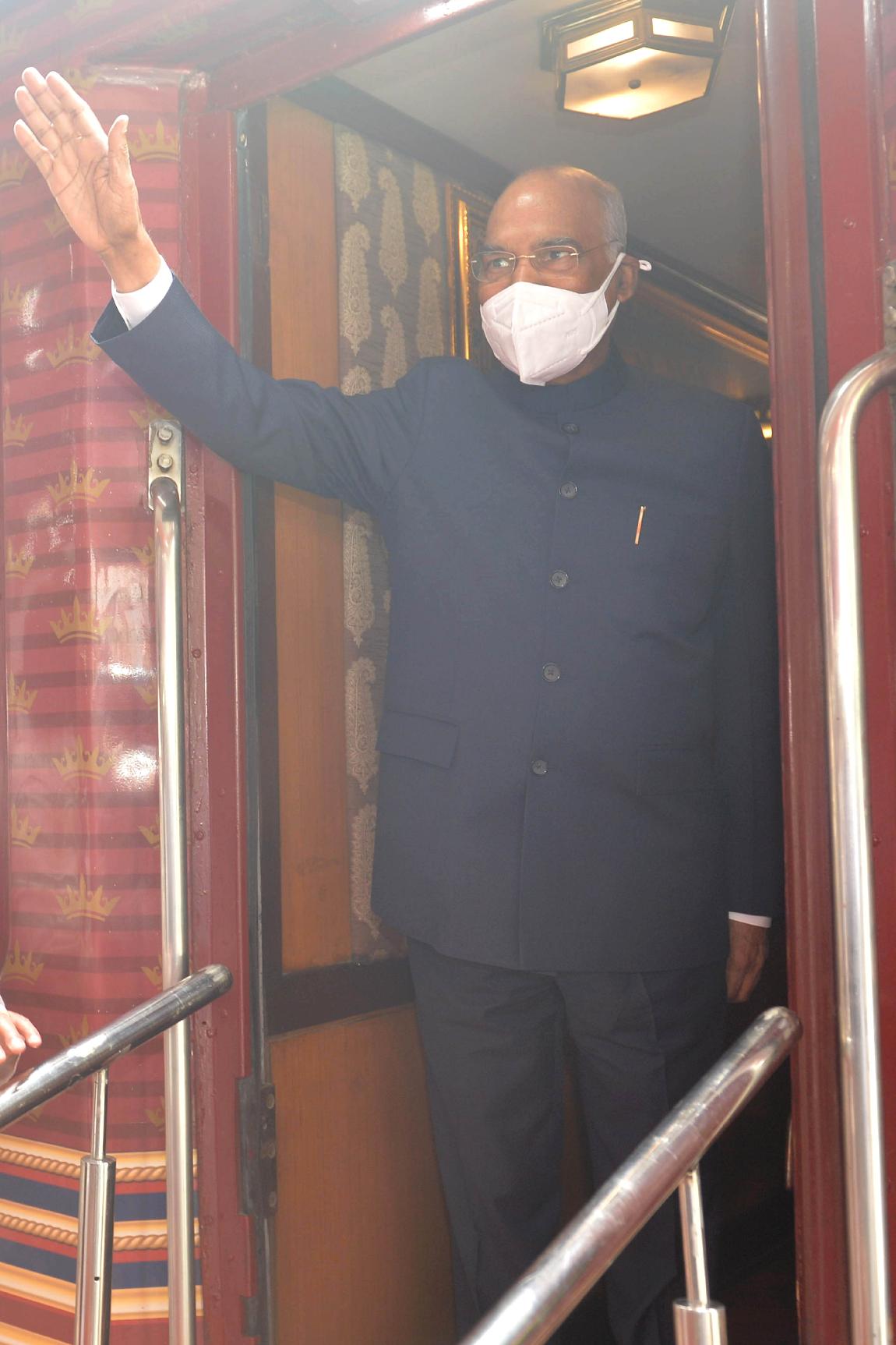 | Caption: | The President of India, Shri Ram Nath Kovind boards a special Presidential train from Safdarjung railway station to Kanpur on June 25, 2021. |