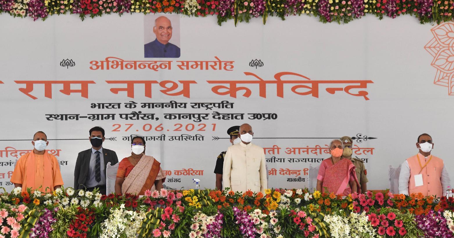 | Caption: | The President of India, Shri Ram Nath Kovind visits his native village Paraunkh, in Kanpur Dehat on June 27, 2021. During his visit to Paraunkh the President paid tributes to Babasaheb Dr B.R. Ambedkar, paid his respects at Pathri Mata Mandir, visited Veerangana Jhalkari Bai Inter College and addressed a Jan Sambodhan Samorah. |