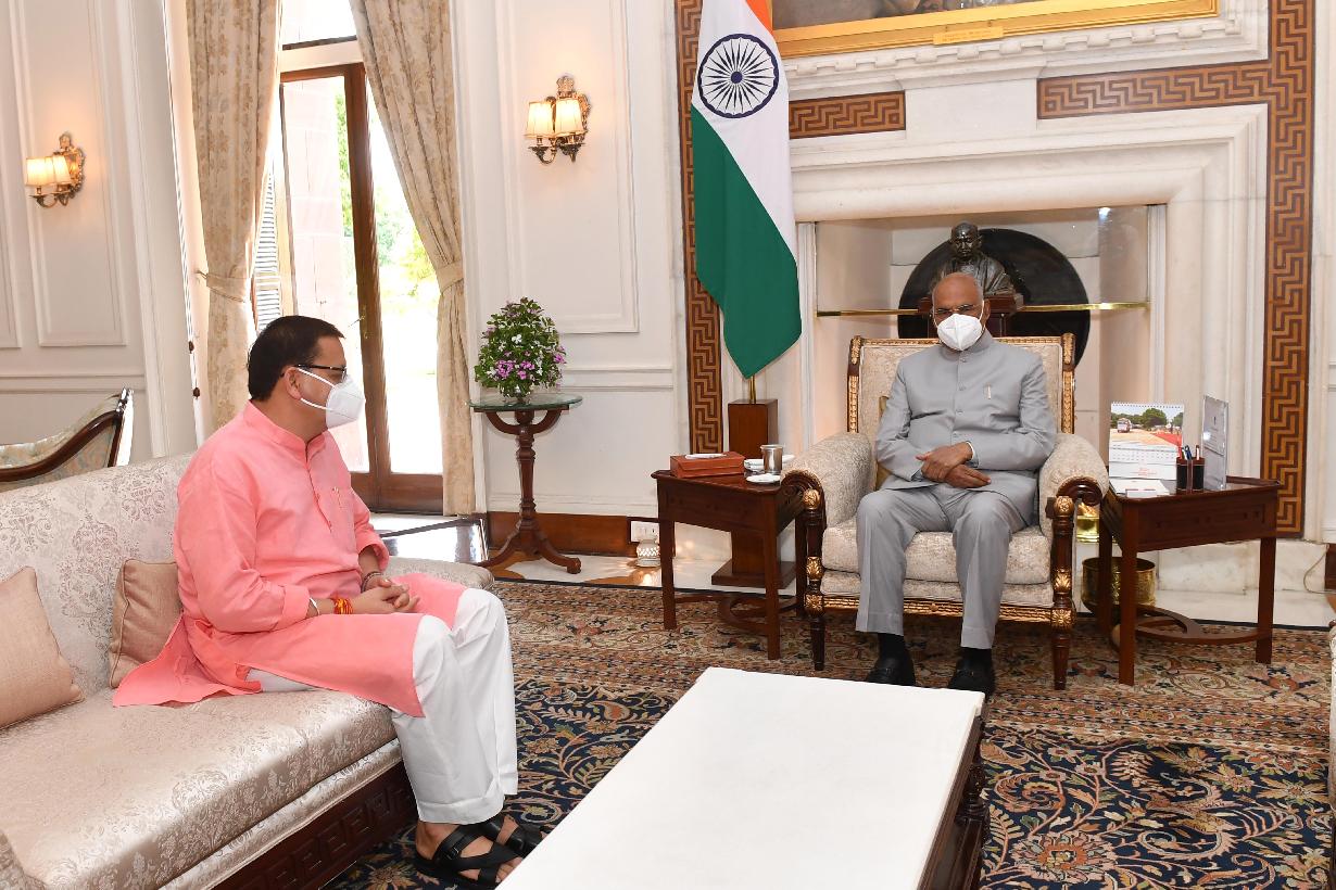 | Caption: | The Chief Minister of Uttarakhand, Shri Pushkar Singh Dhami calling on the President of India, Shri Ram Nath Kovind, at Rashtrapati Bhavan on July 10, 2021. |