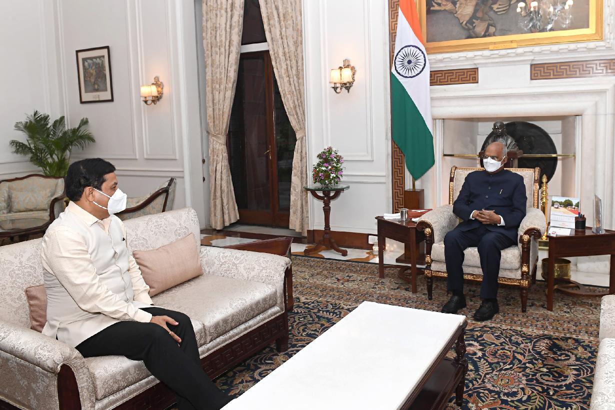 | Caption: | The Minister of Ports, Shipping & Waterways and Ayush, Shri Sarbananda Sonowal calling on the President of India, Shri Ram Nath Kovind, at Rashtrapati Bhavan on July 20, 2021. |