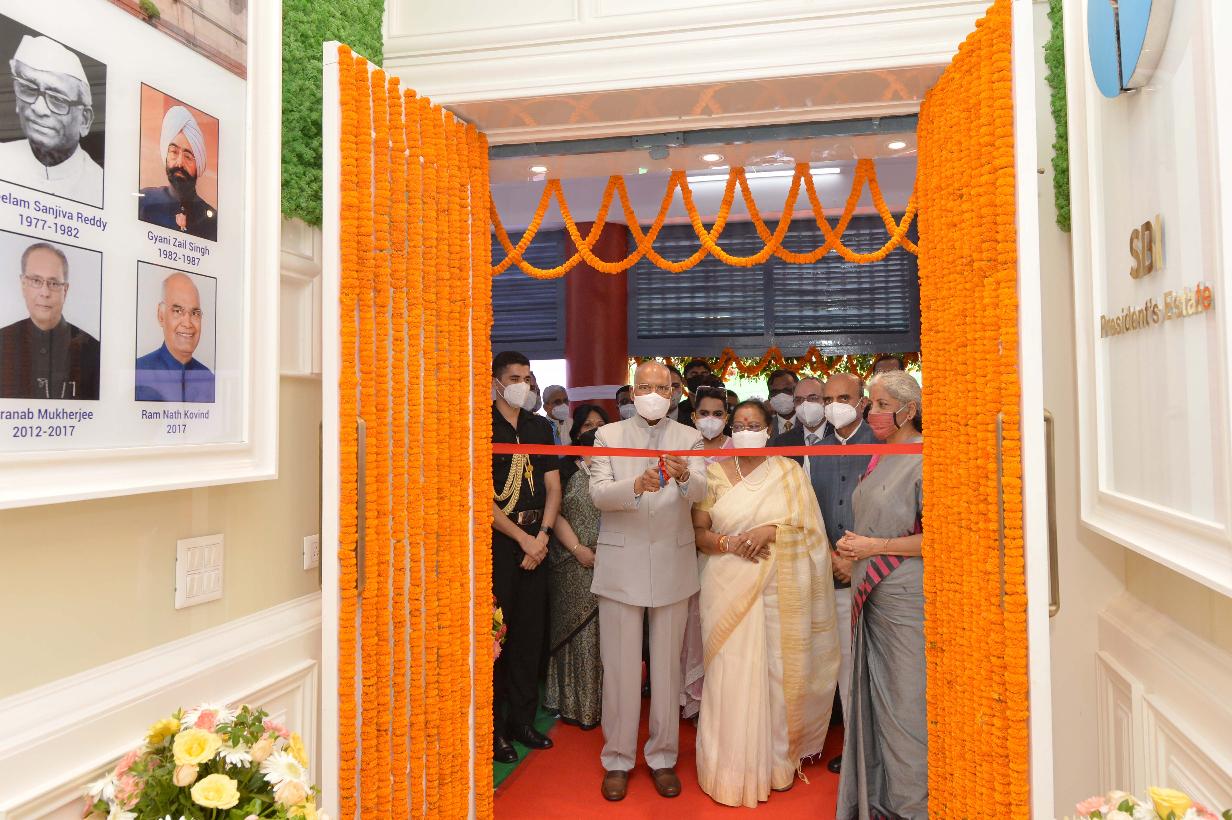 | Caption: | The President of India, Shri Ram Nath Kovind inaugurates the President's Estate branch of the State Bank of India, in the President's Estate Market on July 24, 2021. |