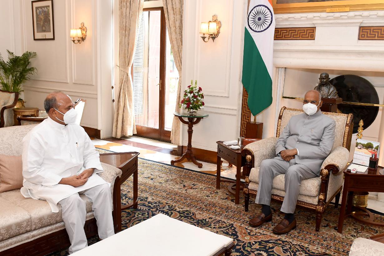 | Caption: | The Minister of Steel, Shri Ram Chandra Prasad Singh calling on the President of India, Shri Ram Nath Kovind, at Rashtrapati Bhavan on July 29, 2021. |
