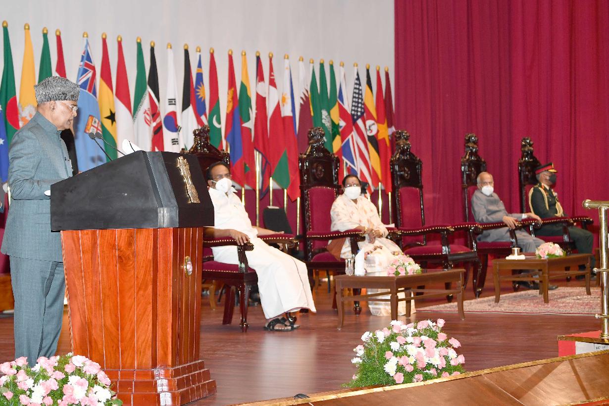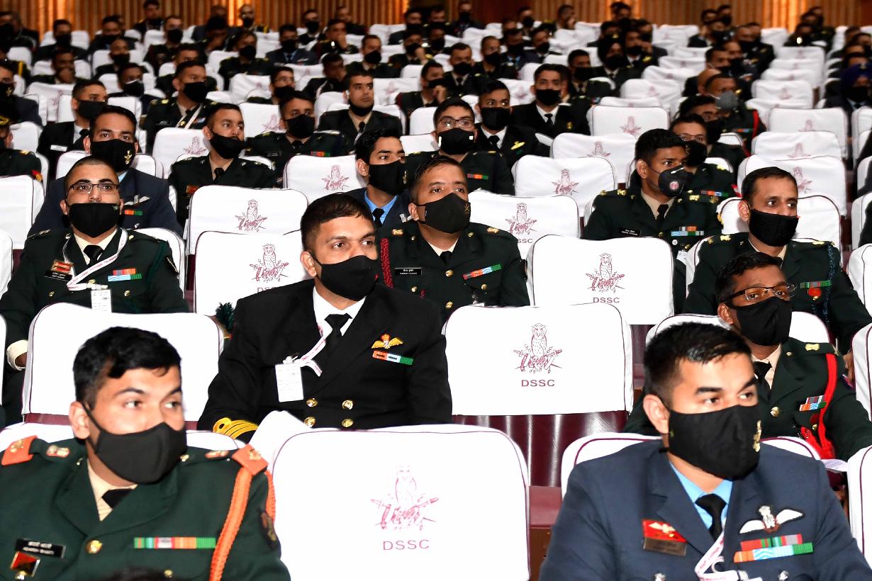| Caption: | The President of India, Shri Ram Nath Kovind addressing the Student Officers of the 77th Staff Course of the Defence Services Staff College, Wellington, in Tamil Nadu on August 04, 2021. |