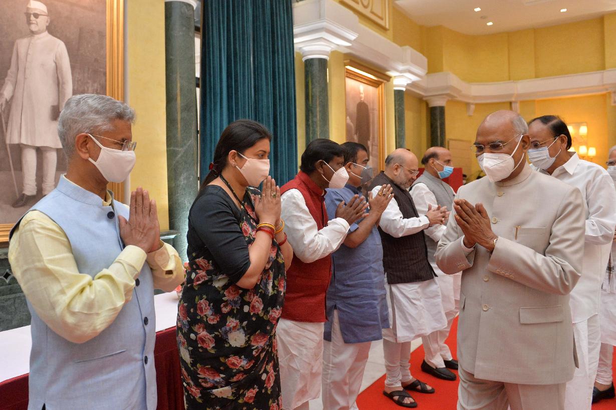 | Caption: | The President of India, Shri Ram Nath Kovind hosted high tea for the Union Council of Ministers led by the Prime Minister, Shri Narendra Modi, at Rashtrapati Bhavan Cultural Centre on August 07, 2021. The Vice President, Shri M. Venkaiah Naidu also graced the occasion. |