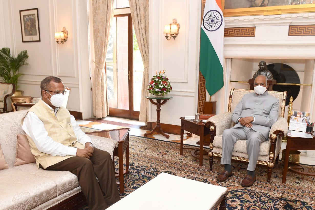 | Caption: | The Minister of State for Commerce and Industry, Shri Som Parkash calling on the President of India, Shri Ram Nath Kovind, at Rashtrapati Bhavan on August 11, 2021. |