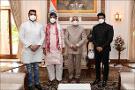 | Caption: | The Minister of Food Processing Industries, Shri Pashupati Kumar Paras with others calling on the President of India, Shri Ram Nath Kovind, at Rashtrapati Bhavan on August 12, 2021. |