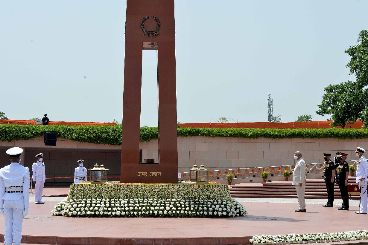 | Caption: | The President of India, Shri Ram Nath Kovind paying tributes at National War Memorial on 75th Independence Day, in New Delhi on August 15, 2021. |