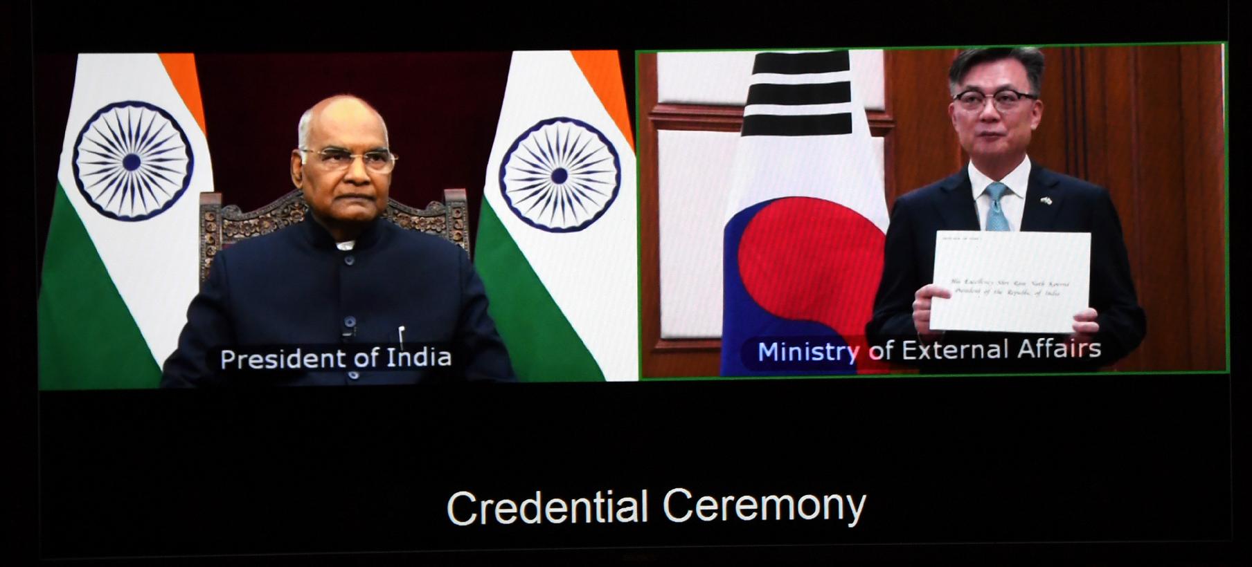 | Caption: | The President of India, Shri Ram Nath Kovind accepting credentials from the Ambassador of the Republic of Korea, H.E.Mr. Chang Jae-bok, in a virtual ceremony, at Rashtrapati Bhavan on August 18, 2021. |
