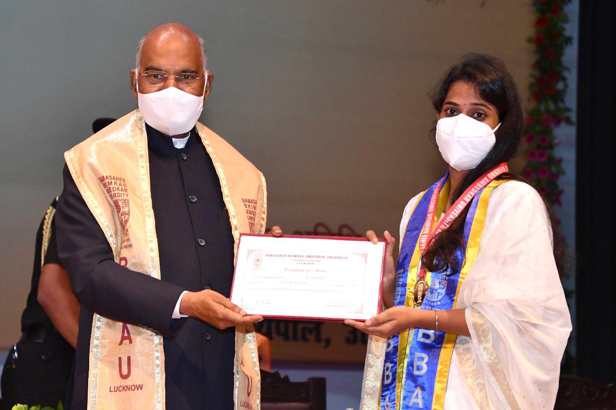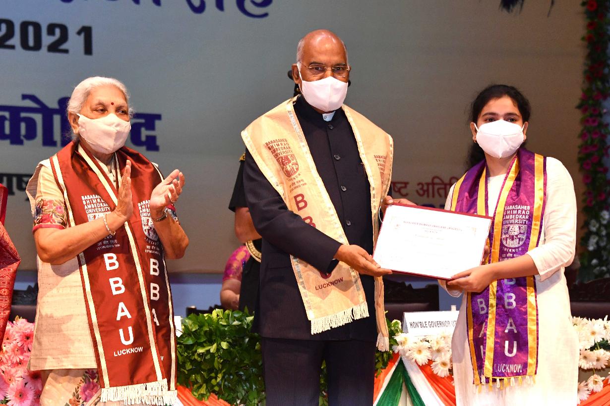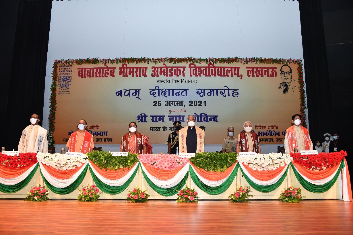 | Caption: | The President of India, Shri Ram Nath Kovind gracing the 9th convocation of the Babasaheb Bhimrao Ambedkar University, in Lucknow on August 26, 2021. |