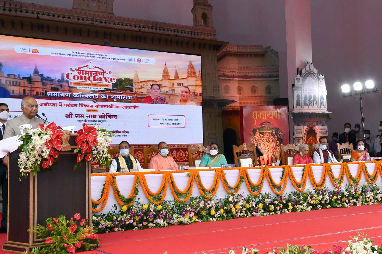 | Caption: | The President of India, Shri Ram Nath Kovind inaugurated Ramayana Conclave, at Ayodhya, in Uttar Pradesh on August 29, 2021. The President also laid foundation stones of some projects of Government of Uttar Pradesh aimed at promoting culture and tourism. |