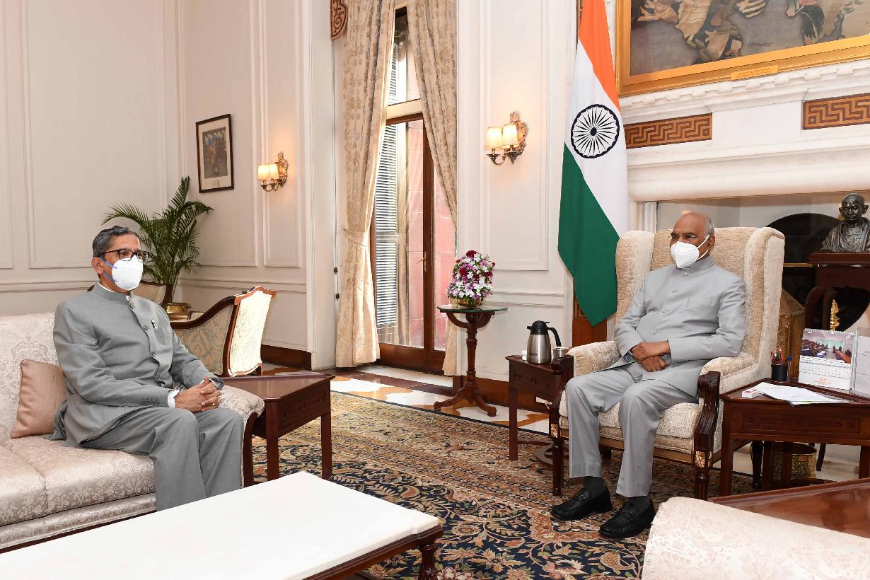 | Caption: | The Chief Justice of India, Shri Justice N.V. Ramana calling on the President of India, Shri Ram Nath Kovind, at Rashtrapati Bhavan on September 29, 2021. |