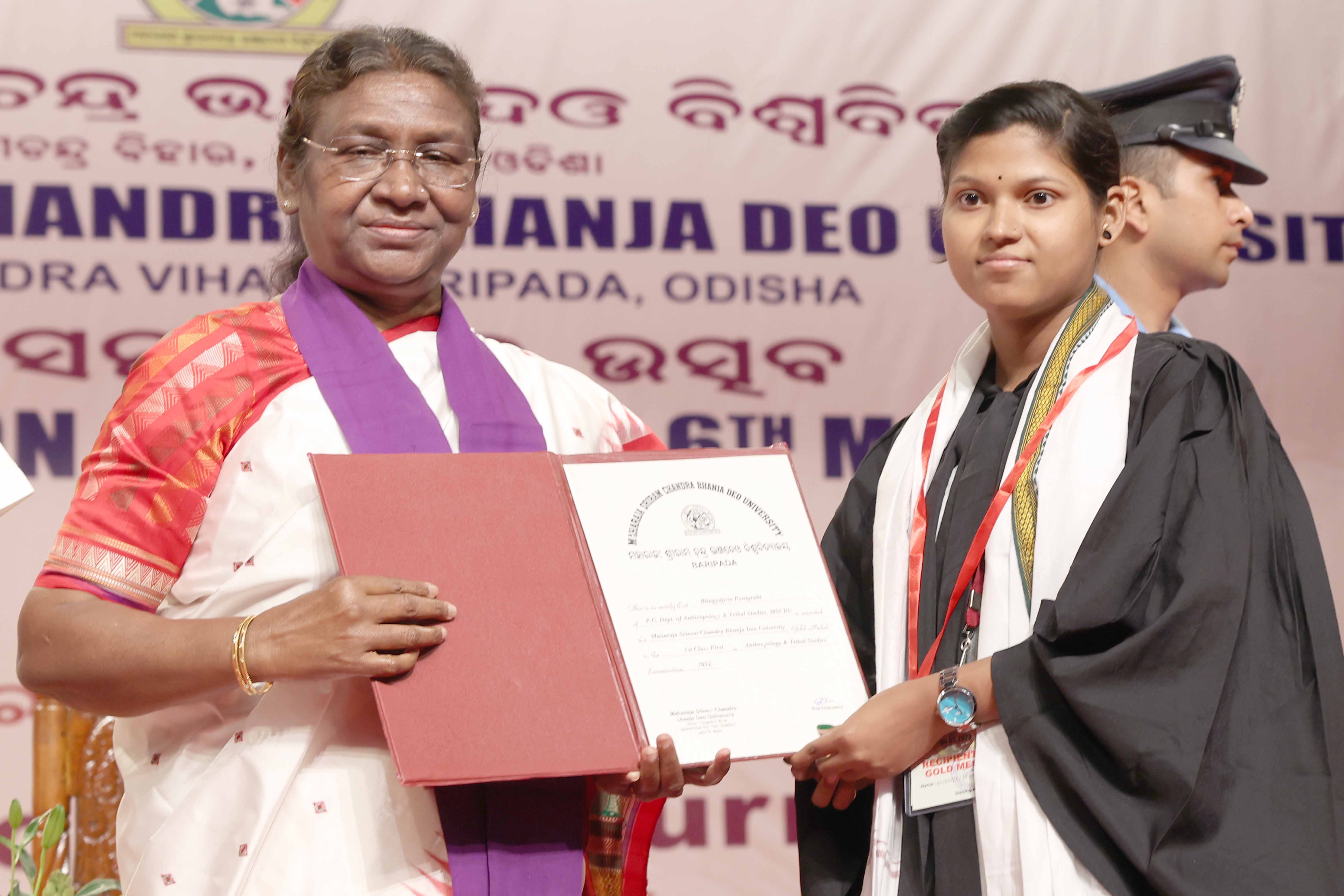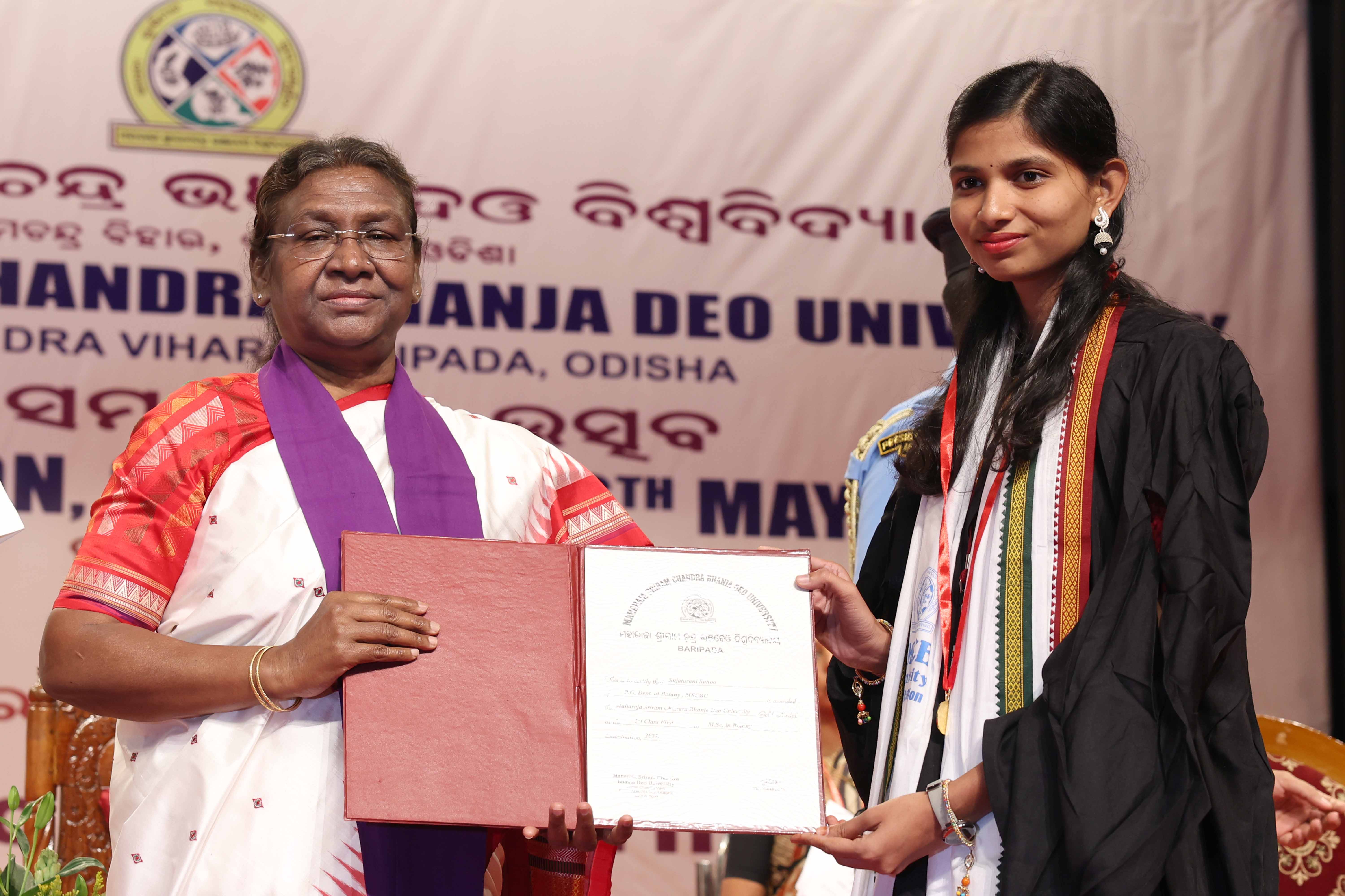 | Caption: | The President of India, Smt Droupadi Murmu gracing the 12th convocation of Maharaja Sriram Chandra Bhanja Deo University at Baripada, Odisha on May 6, 2023. |