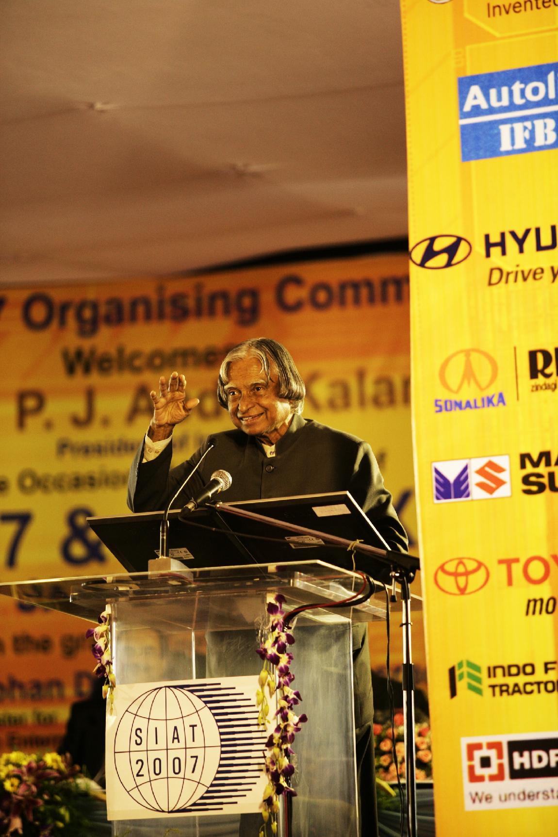 | Caption: | The President of India, Dr A P J Abdul Kalam addressing at the Symposium on International Automotive Technology being organised by the Automotive Research Association of India at Pune in Maharashtra on Jan 17, 2007 |