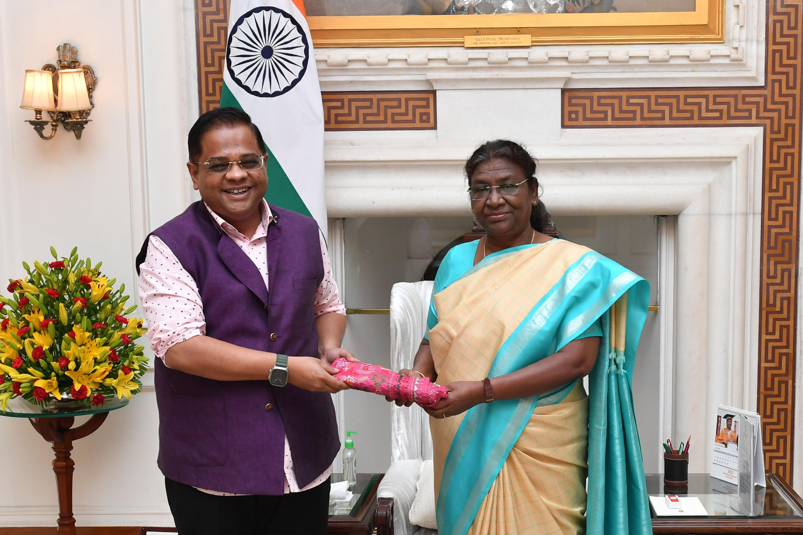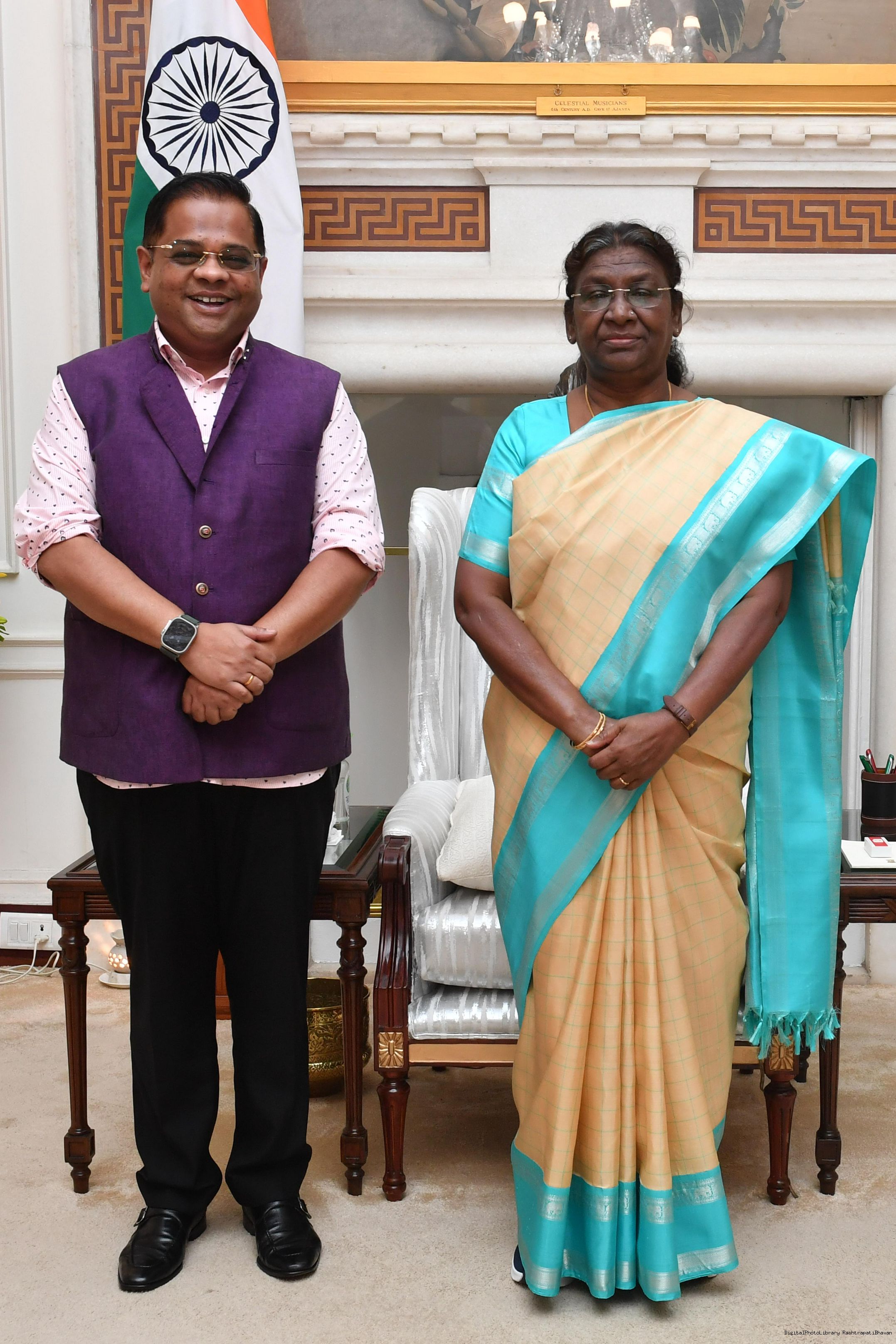 | Caption: | Shri Amit Jogi, State President, Janta Congress Chhattisgarh (J) meeting with the President of India, Smt. Droupadi Murmu at Rashtrapati Bhavan on June 12, 2023. |