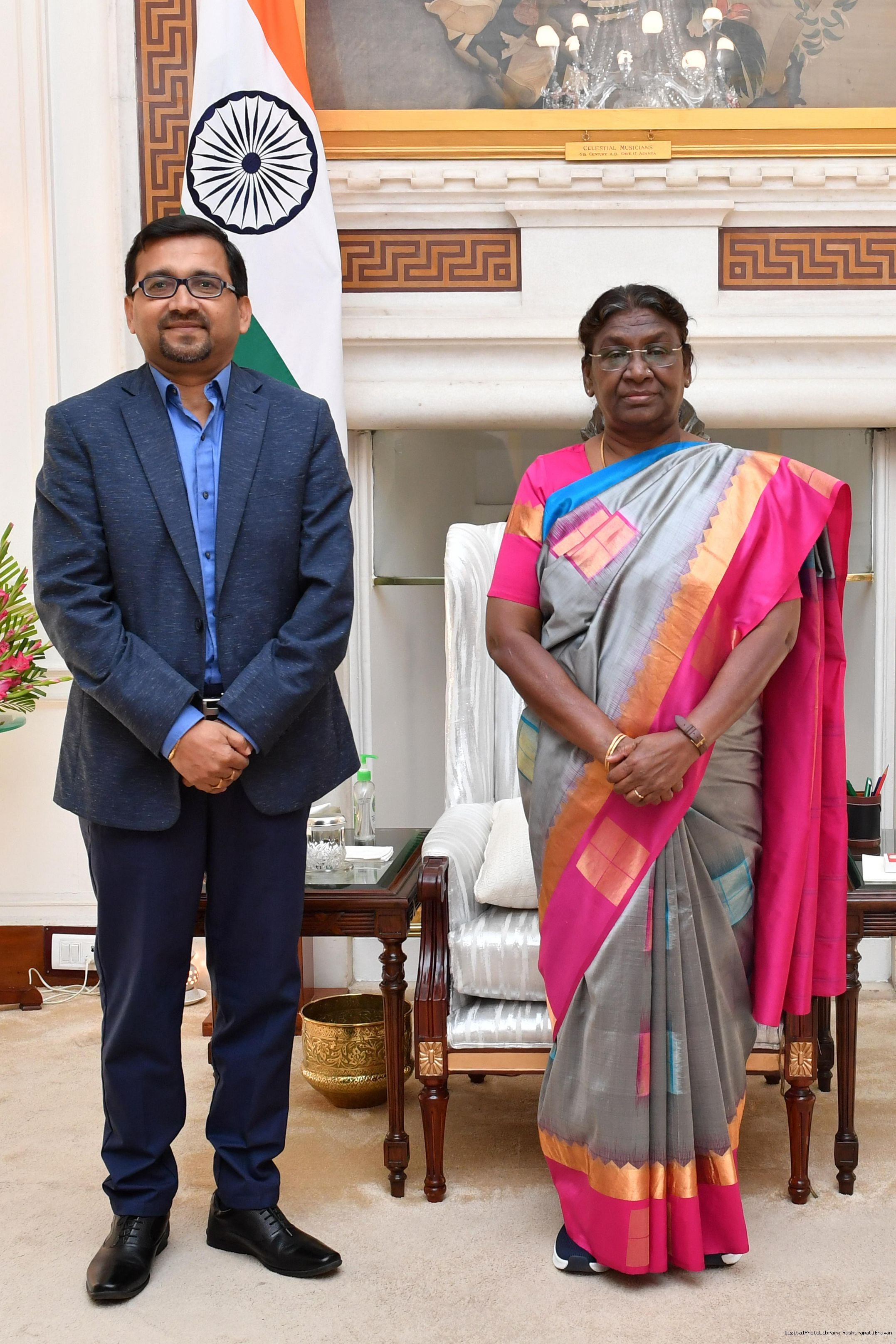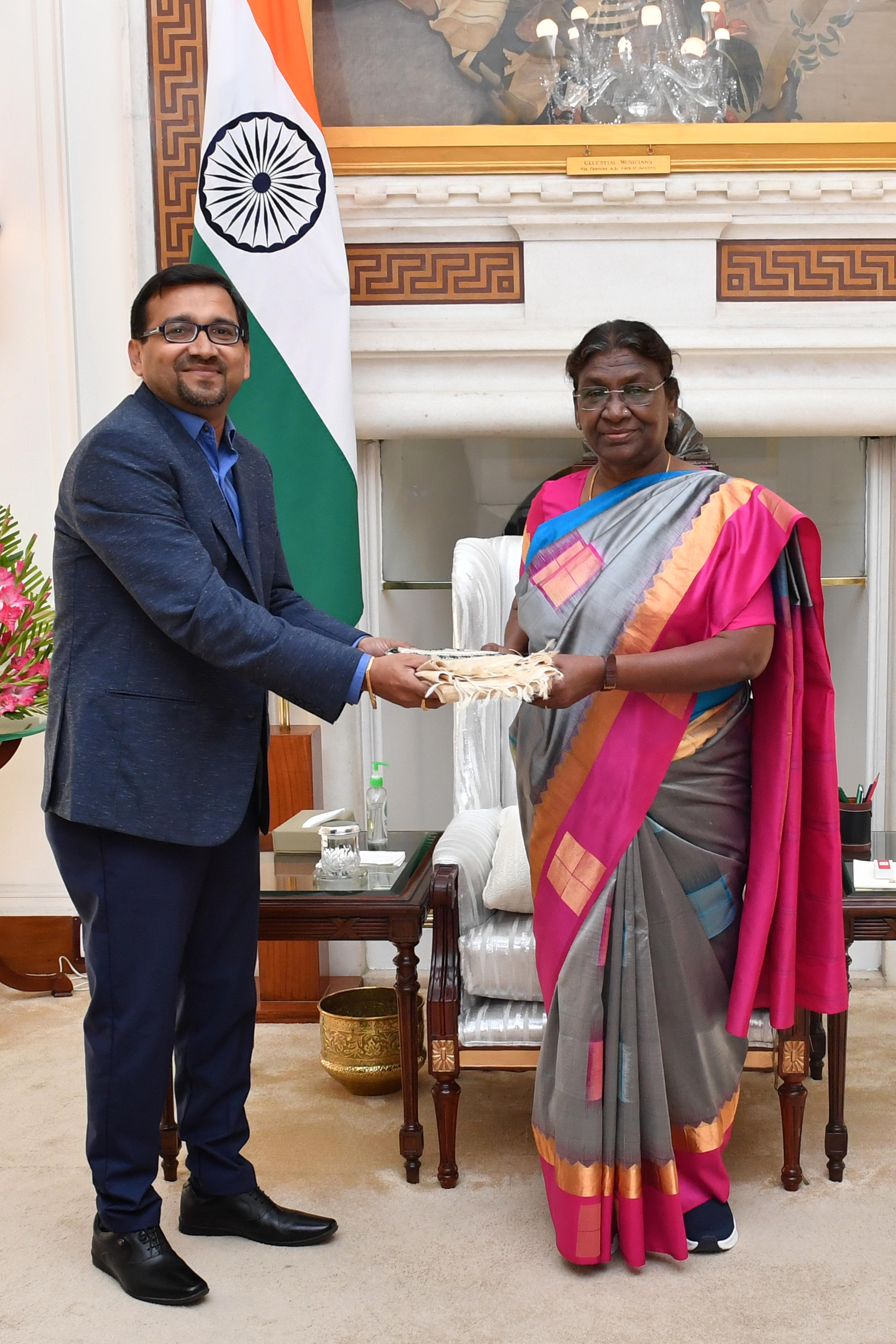 | Caption: | Shri Sudhi Ranjan Mishra, Head-Corporate Affairs, Paradeep Phosphates Limited, Bhubaneswar meeting with the President of India, Smt. Droupadi Murmu at Rashtrapati Bhavan on June 14, 2023. |