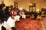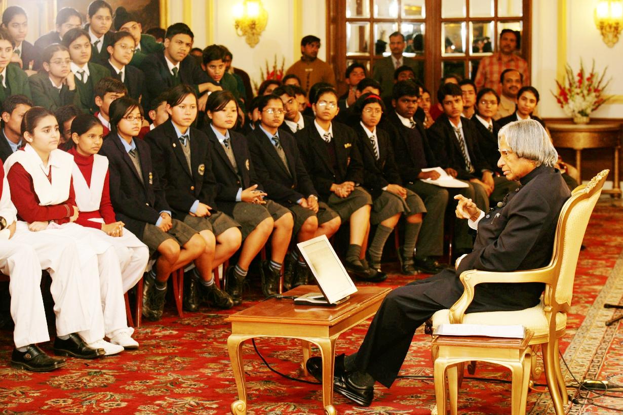 | Caption: | The President of India, Dr A P J Abdul Kalam administering the Pledge to the School Children from Various School of Delhi towards the Concluding Part of the President's Address to the Nation on the occasion of Republic Day at the Yellow Drawing Room at Rashtrapati Bhavan in New Delhi on Jan 22, 2007 |