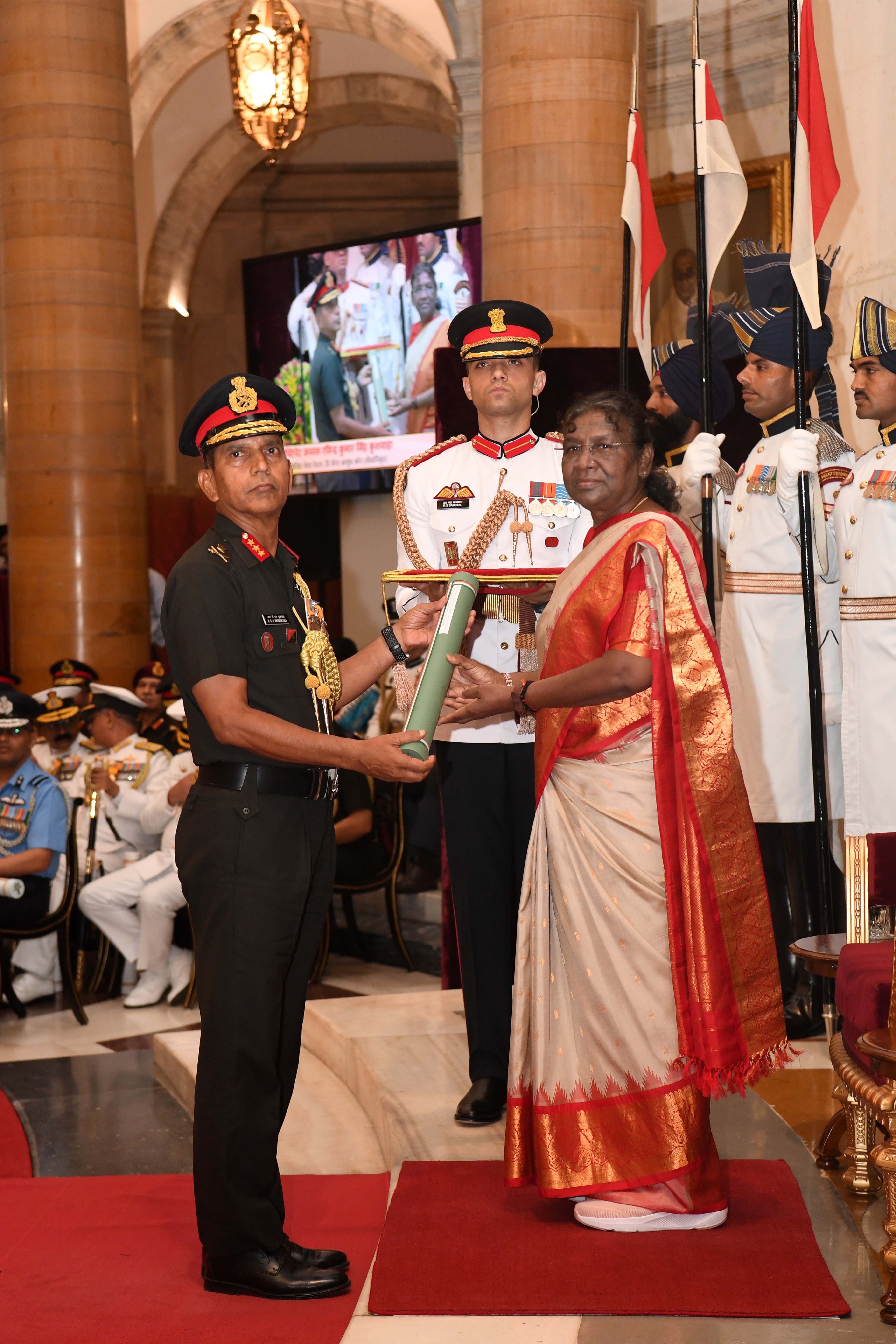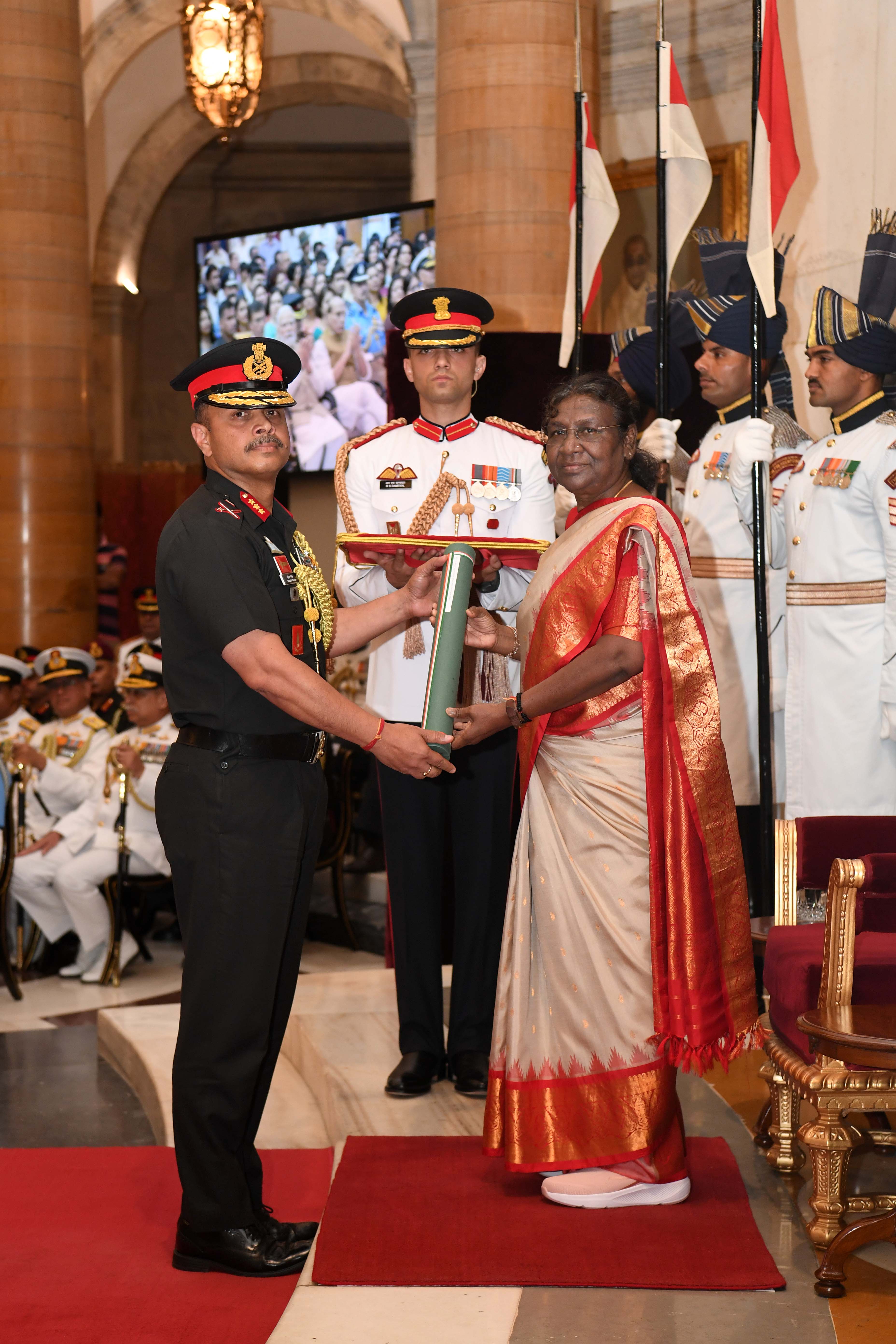 | Caption: | The President of India, Smt Droupadi Murmu presented Distinguished Service Awards at the Defence Investiture Ceremony-II held at Rashtrapati Bhavan on June 27, 2023. |