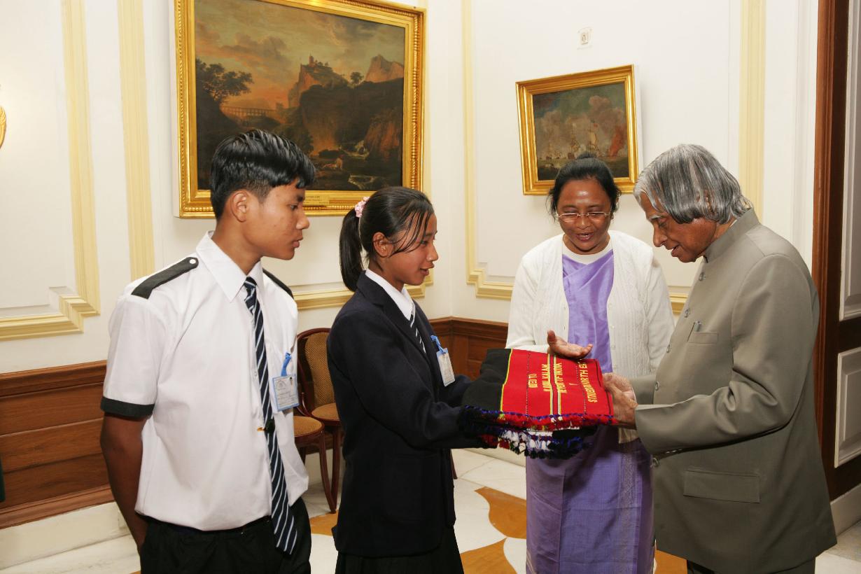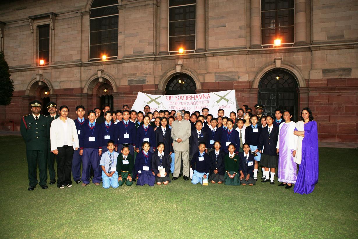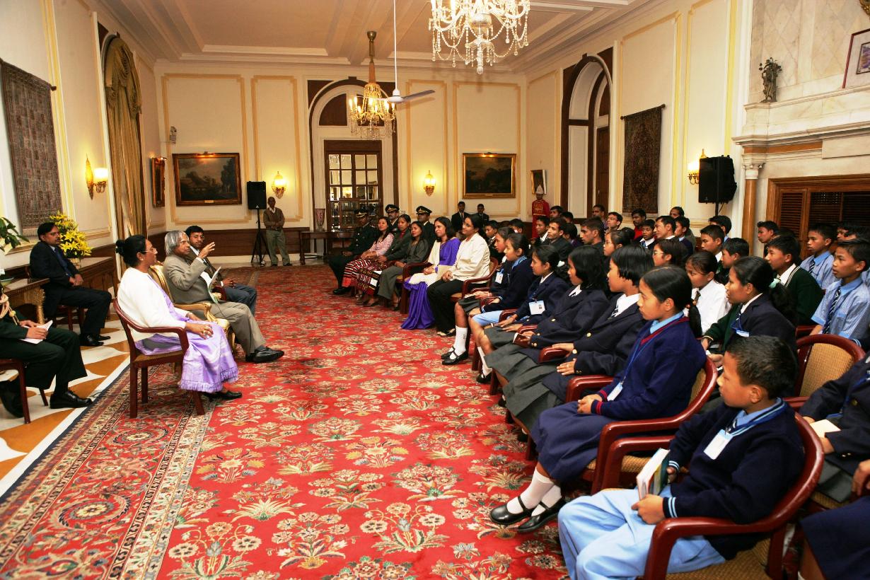 | Caption: | The Students of Shalom High School, Step-by-Step School, Trinity High School and Mount Zion School from North Cachar Hills District of Assam calling on the President of India, Dr A P J Abdul Kalam at the Yellow Drawing Room of Rashtrapati Bhavan in New Delhi on Jan 24, 2007 |
