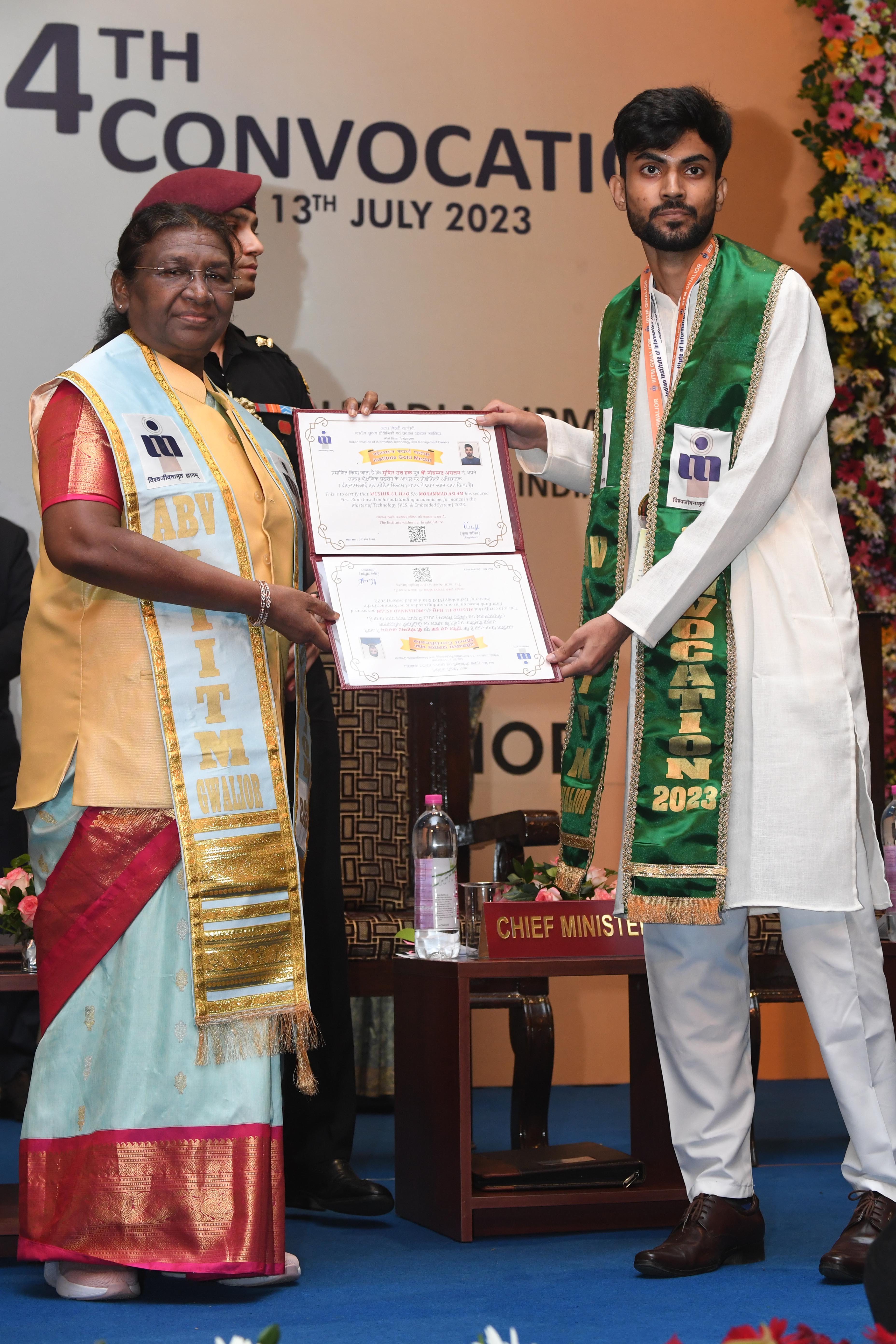 | Caption: | The President of India, Smt Droupadi Murmu graced and addressed the 4th convocation of Atal Bihari Vajpayee-Indian Institute of Information Technology and Management (ABV-IIITM) at Gwalior, Madhya Pradesh on July 13, 2023. |