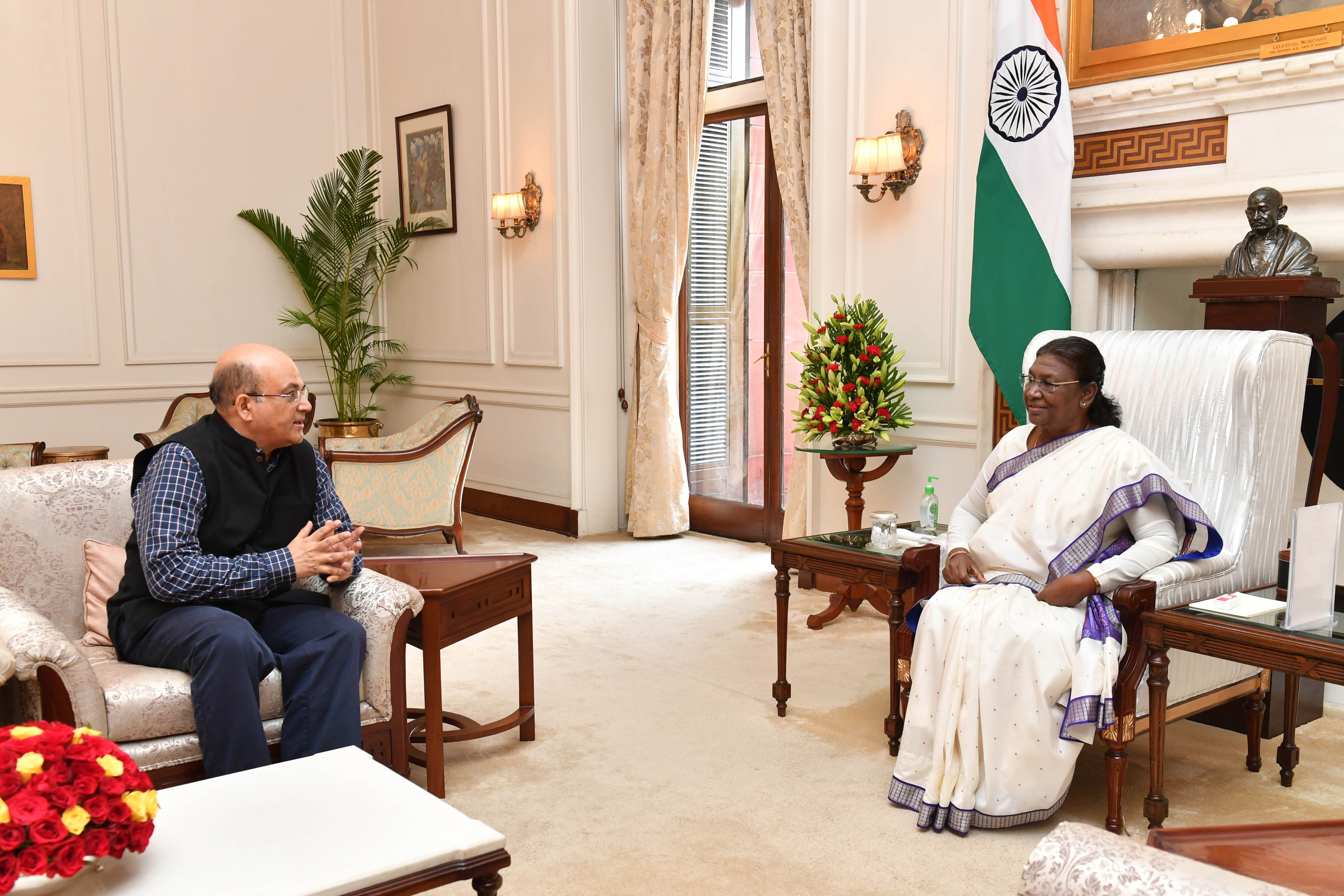 | Caption: | Prof. Rishikesha T. Krishnan, Director, Indian Institute of Management Banglore meeting with the President of India, Smt. Droupadi Murmu at Rashtrapati Bhavan on July 21, 2023. |