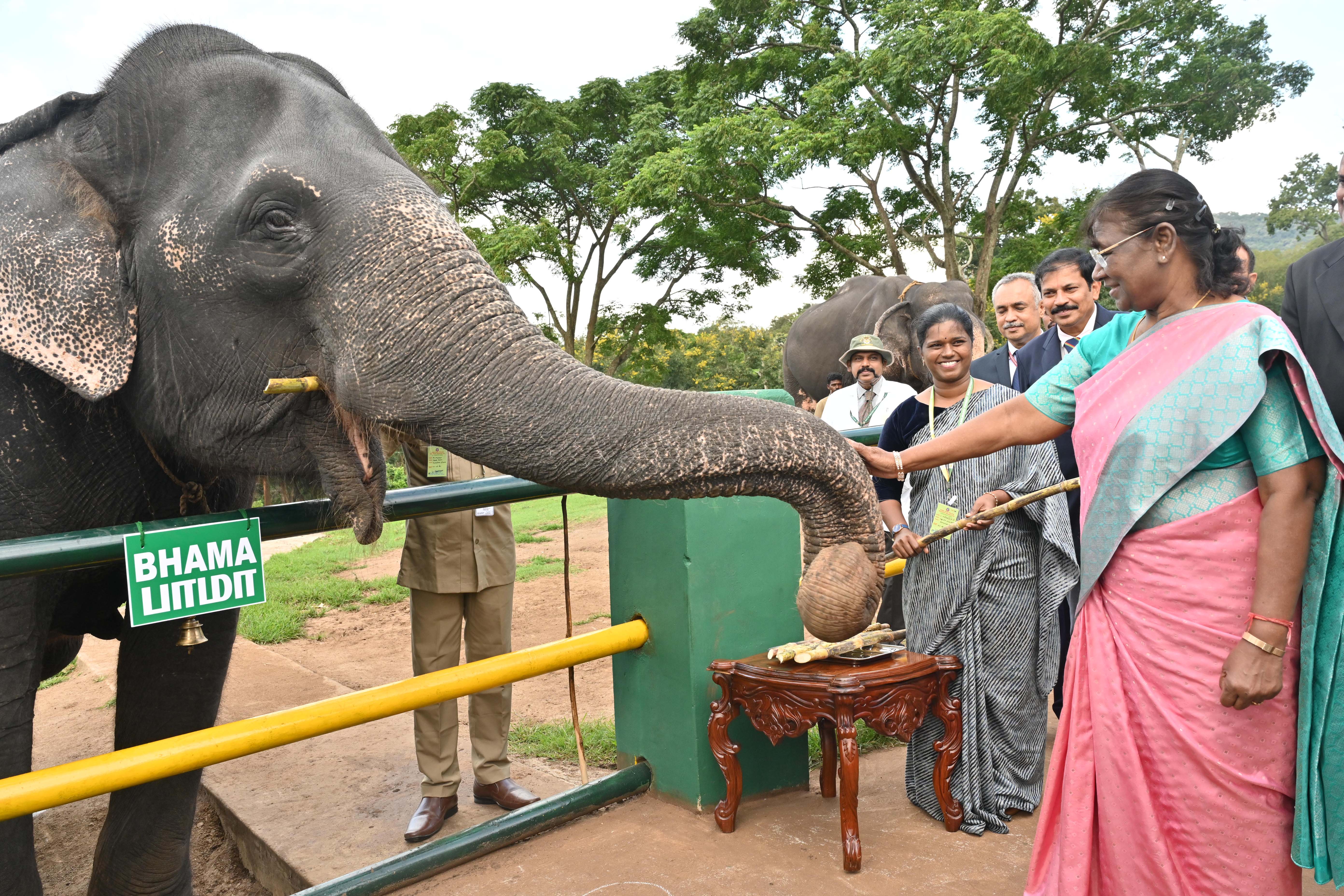 | Caption: | The President of India, Smt Droupadi Murmu visited Theppakadu Elephant Camp, one of Asia’s oldest Elephant camps, at the Mudumalai Tiger Reserve, Tamil Nadu on August 5, 2023. |