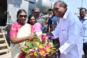 | Caption: | The Lt. Governor of Puducherry, Shri Tamilisai Soundararajan and the Chief Minister, Shri N. Rangaswamy received the President of India Smt. Droupadi Murmu on her arrival at Puducherry on August 7, 2023. |