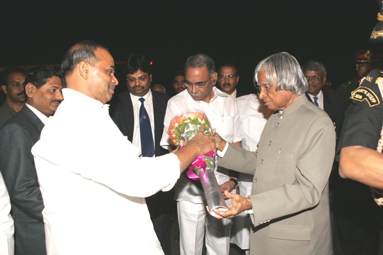 | Caption: | The President of India, Dr A P J Abdul Kalam being seen off by the Governor Andhra Pradesh, Shri Rameshwar Thakur from Hyderabad Airport in Andhra Pradesh on Feb 01, 2007 |