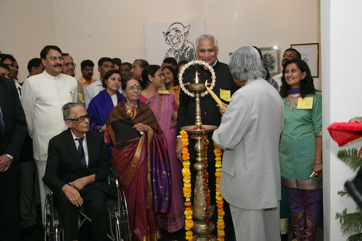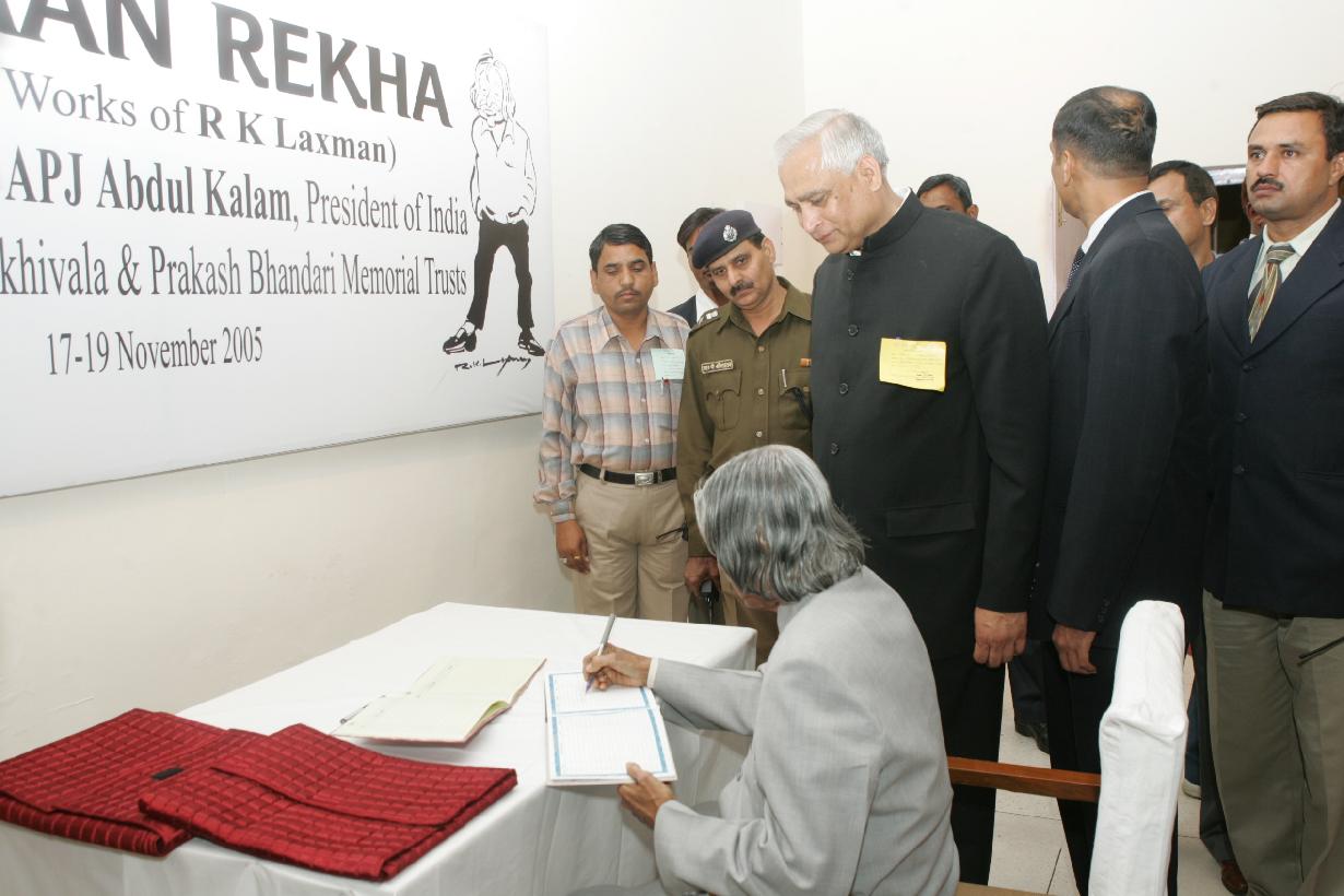 | Caption: | The President of India, Dr A P J Abdul Kalam inaugurating and Visit an Exhibition of Selected Works of Shri R K Laxman at Jaipur in Rajasthan on Nov 17, 2005 |