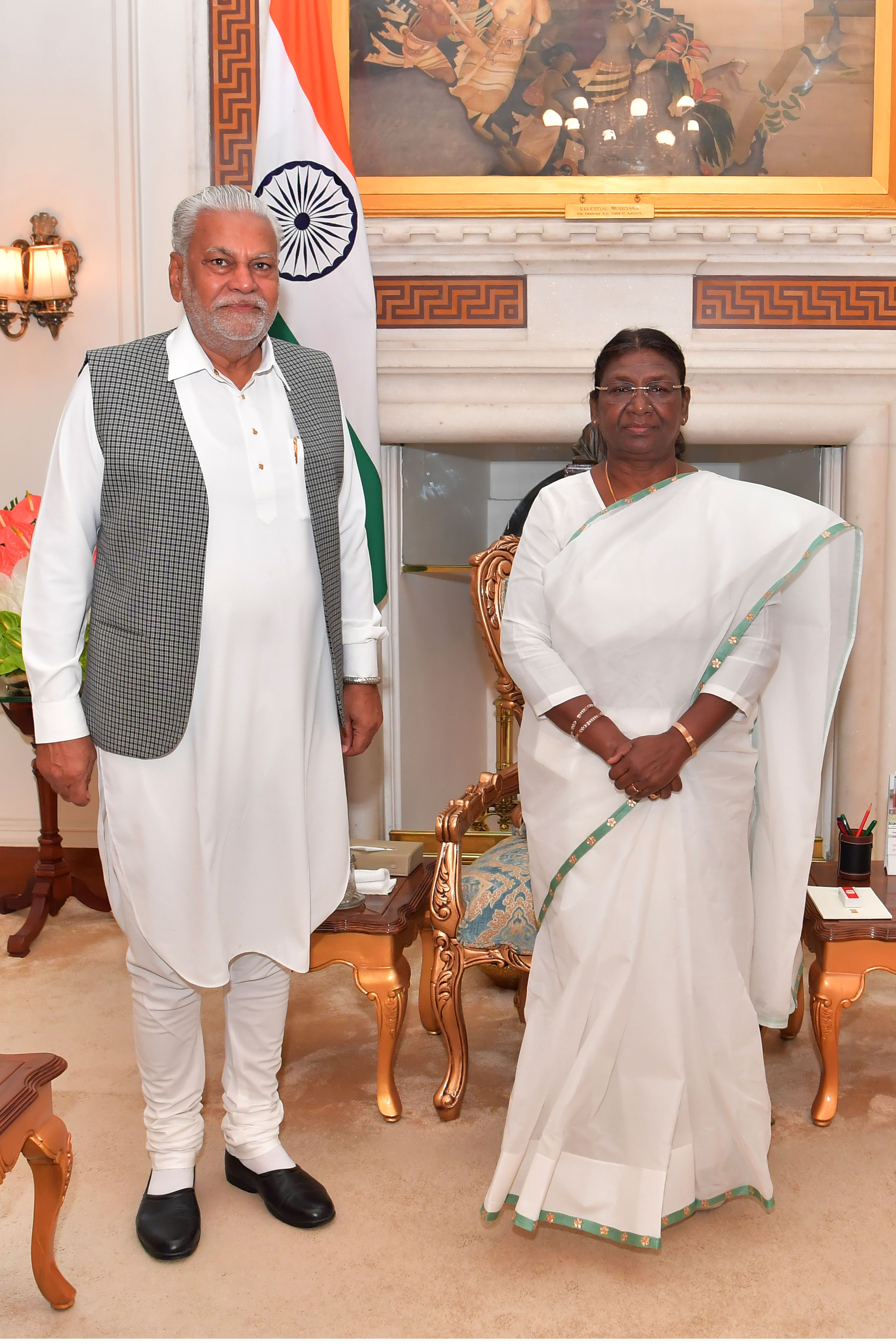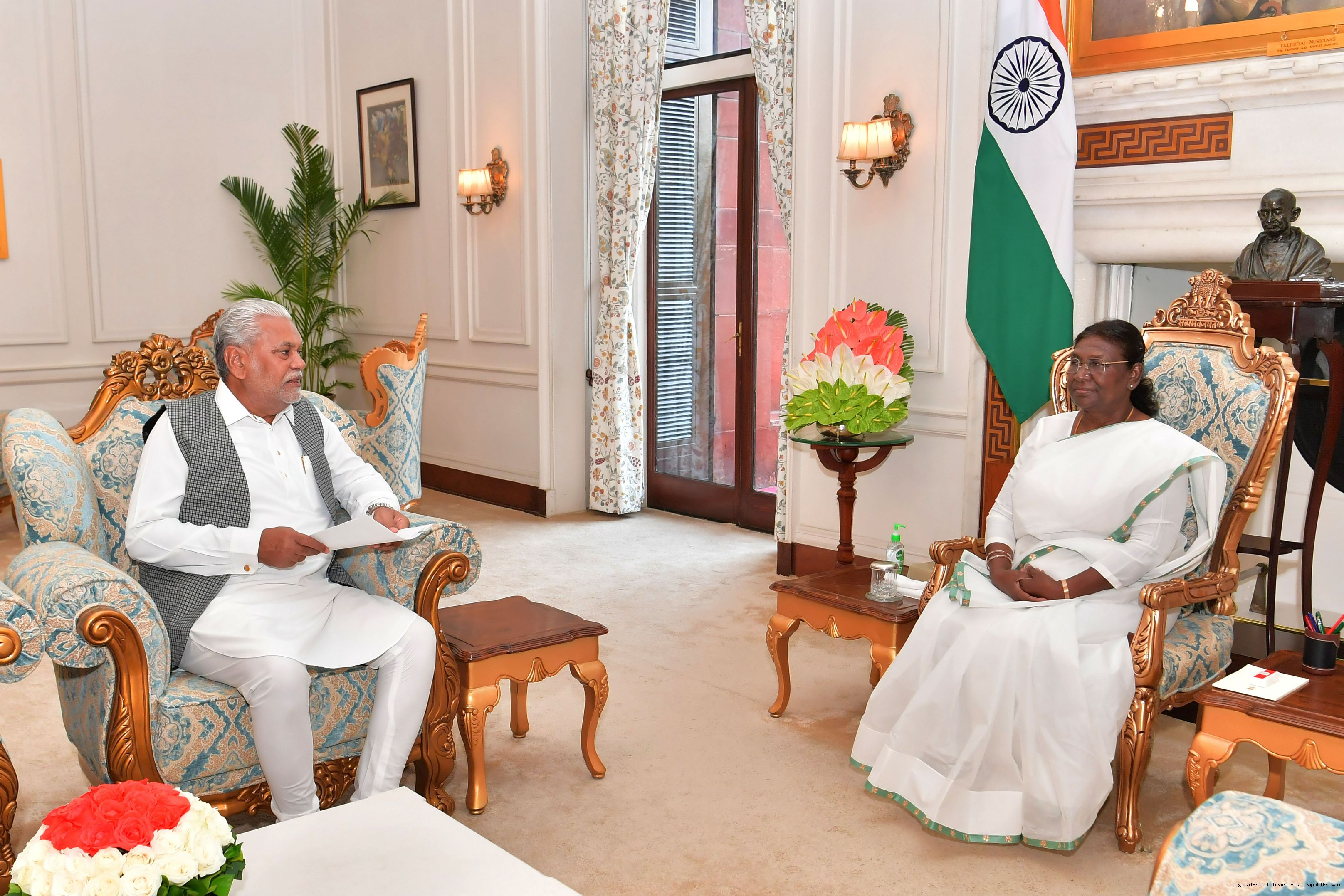 | Caption: | The Minister of State for Animal Husbandry, Dairying and Fisheries , Govt. of India, Shri Parshottam Rupala called on the President of India, Smt Droupadi Murmu at Rashtrapati Bhavan on August 16, 2023. |