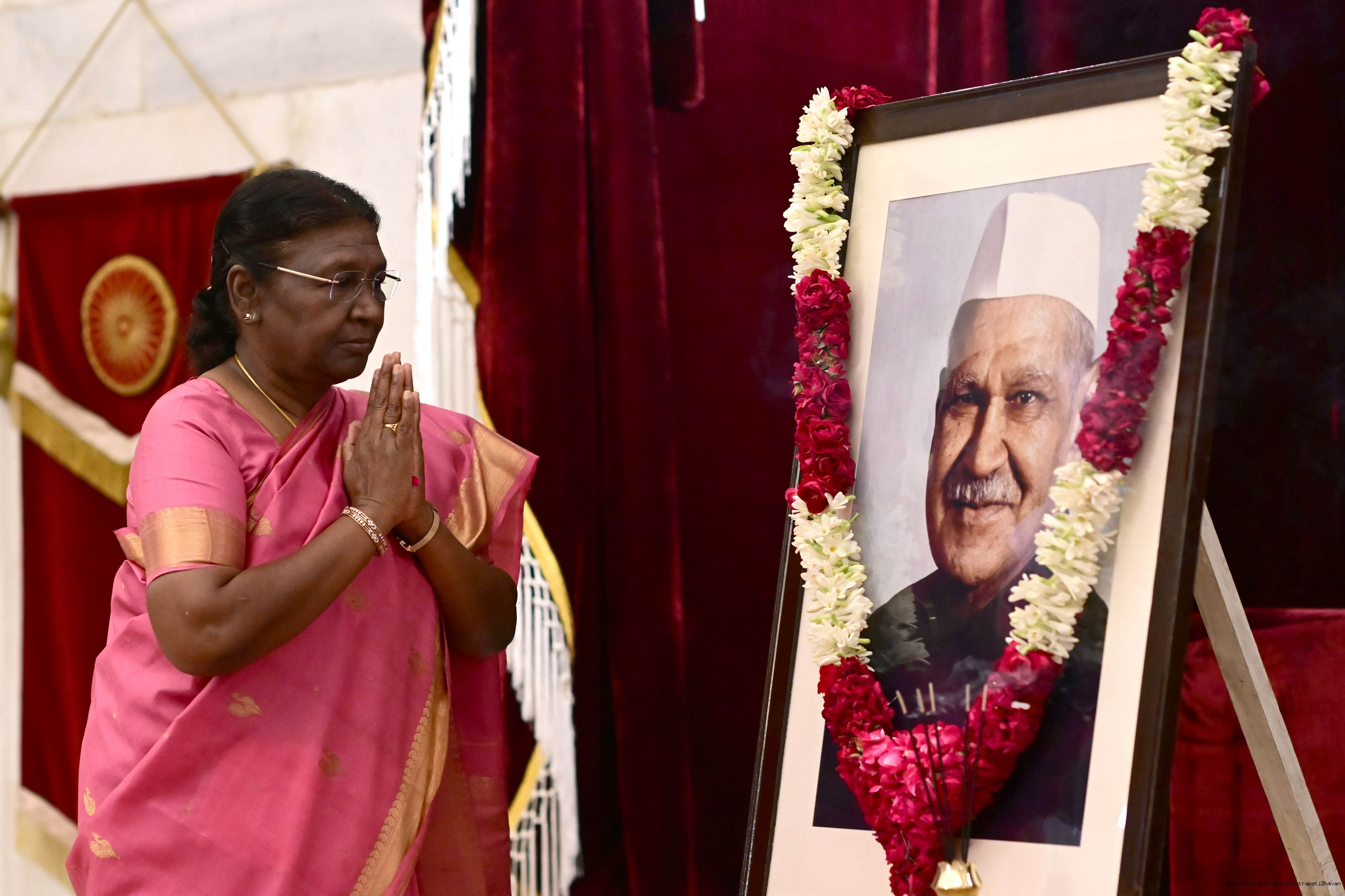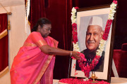 | Caption: | The President of India, Smt Droupadi Murmu paid homage to Dr Shanker Dayal Sharma, former President of India, on his birth anniversary at Rashtrapati Bhavan on August 19, 2023. |