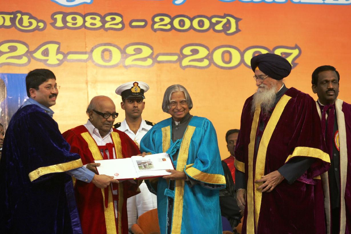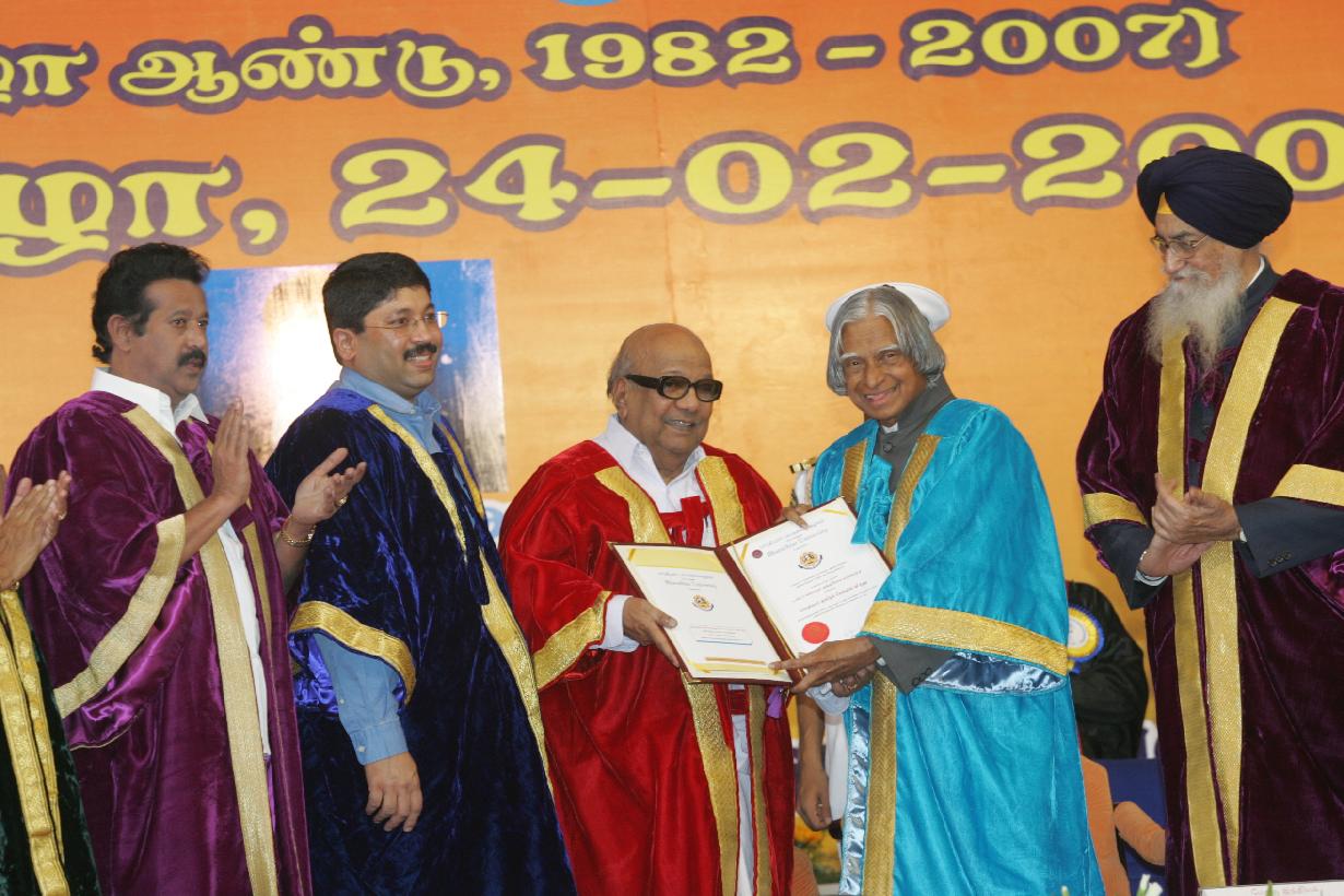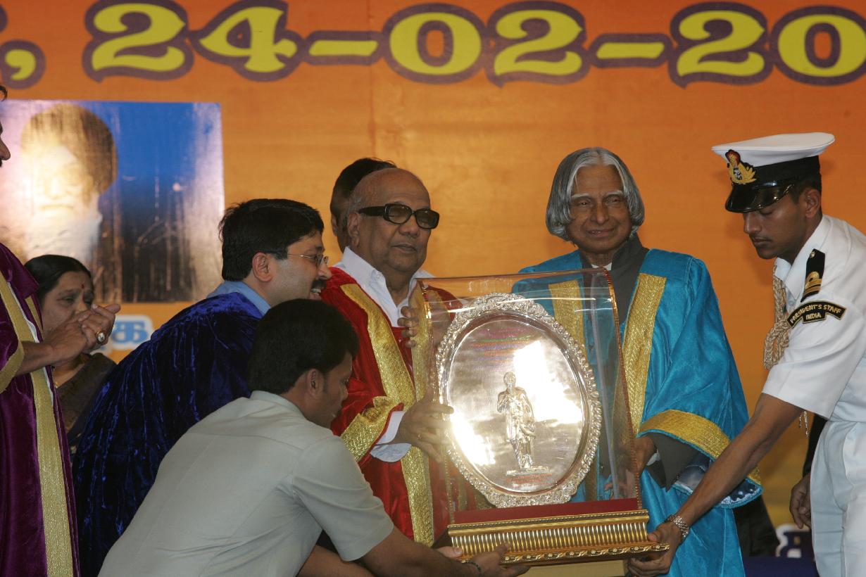 | Caption: | The President of India, Dr A P J Abdul Kalam at the Silver Jubilee Celebrations and Presentation of Bharathiar Tamil Chemmal Award to the Chief Minister of Tamil Nadu, Shri M Karunanidhi at Coimbatore in Tamil Nadu on Feb 24, 2007 |