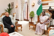 | Caption: | The Ambassador-designate of India to Sao Tome and Principe,Shri Deepak Miglani meeting with the President of India, Smt. Droupadi Murmu at Rashtrapati Bhavan on September 6, 2023. |