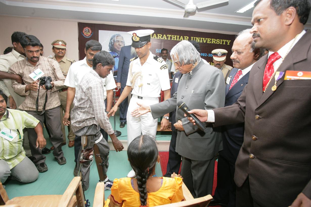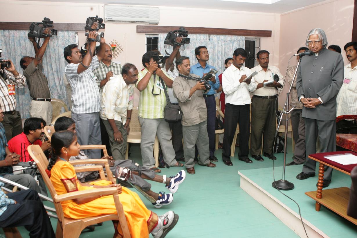 | Caption: | The President of India, Dr A P J Abdul Kalam with the Polio Caliper Fitted Children at Coimbatore in Tamil Nadu on Feb 24, 2007 |
