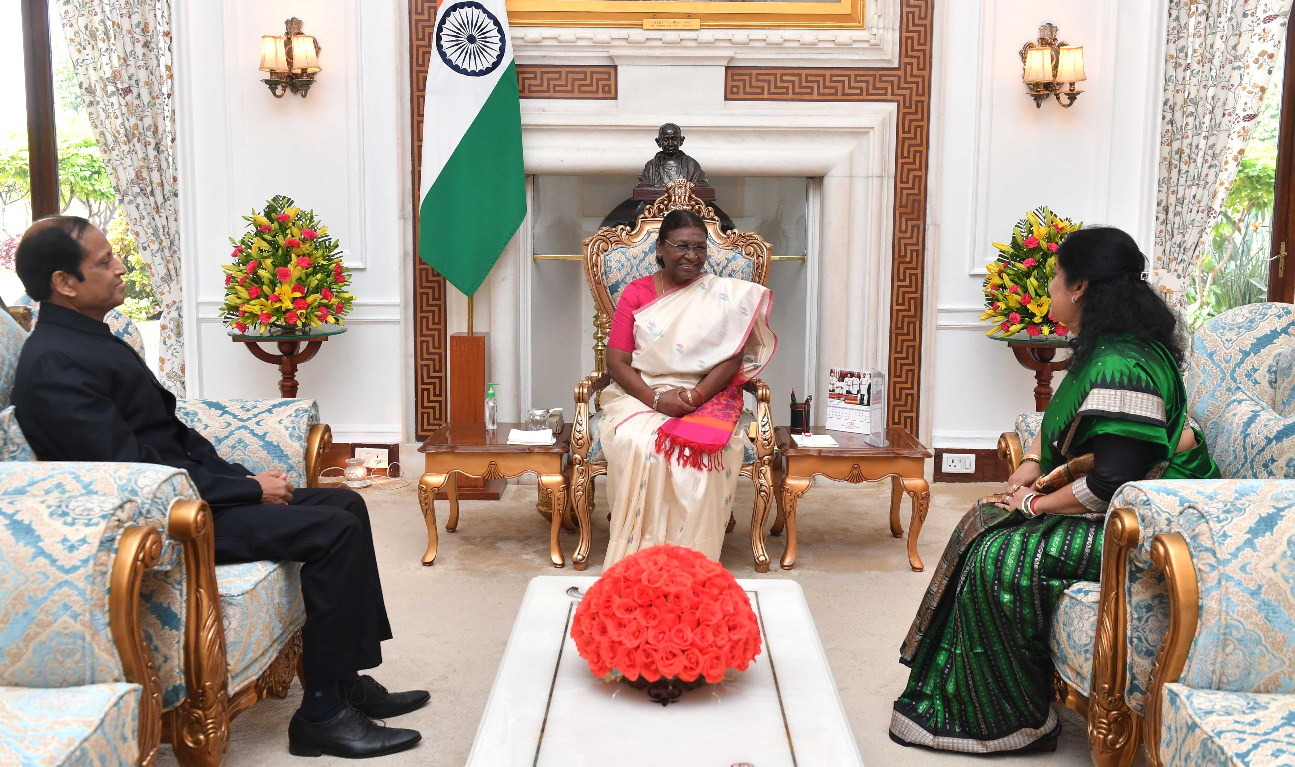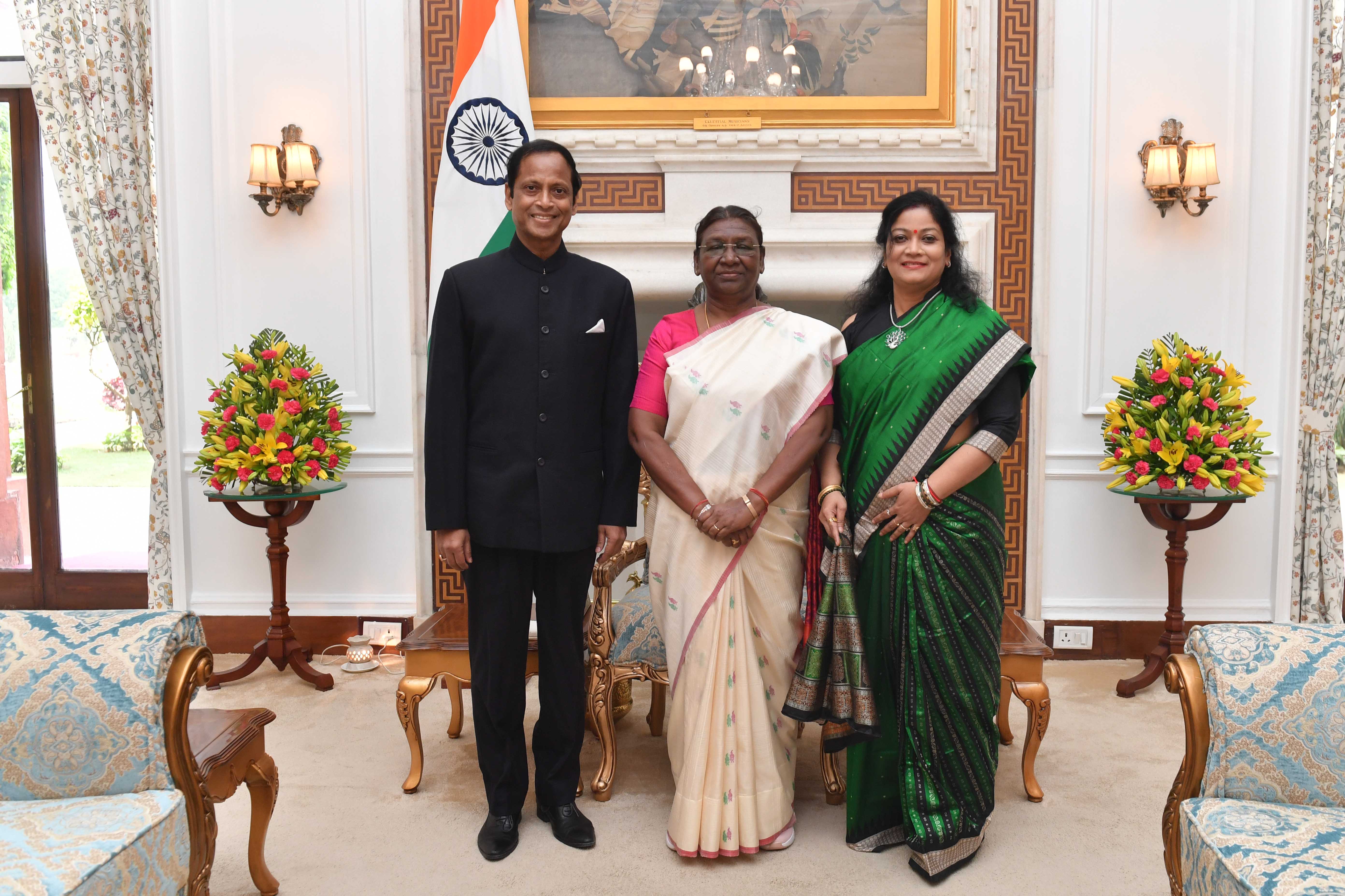 | Caption: | Shri Ashok Das, former IFS along with his wife Dr. Erika Das meeting with the President of India, Smt. Droupadi Murmu at Rashtrapati Bhavan on September 26, 2023. |