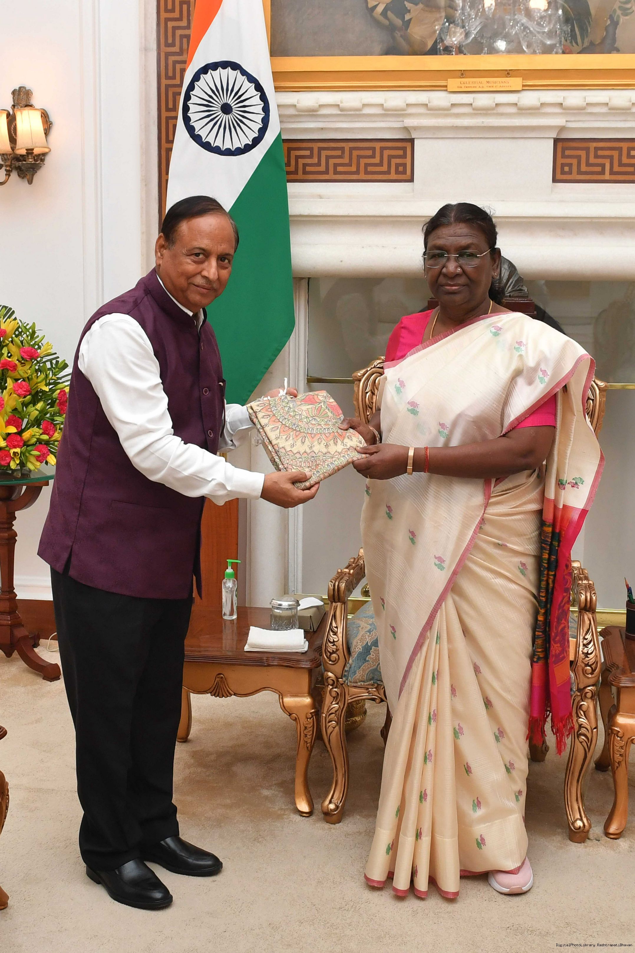 | Caption: | Prof. Kameshwar Nath Singh, Vice Chancellor, Central University of South Bihar meeting with the President of India, Smt. Droupadi Murmu at Rashtrapati Bhavan on September 26, 2023. |