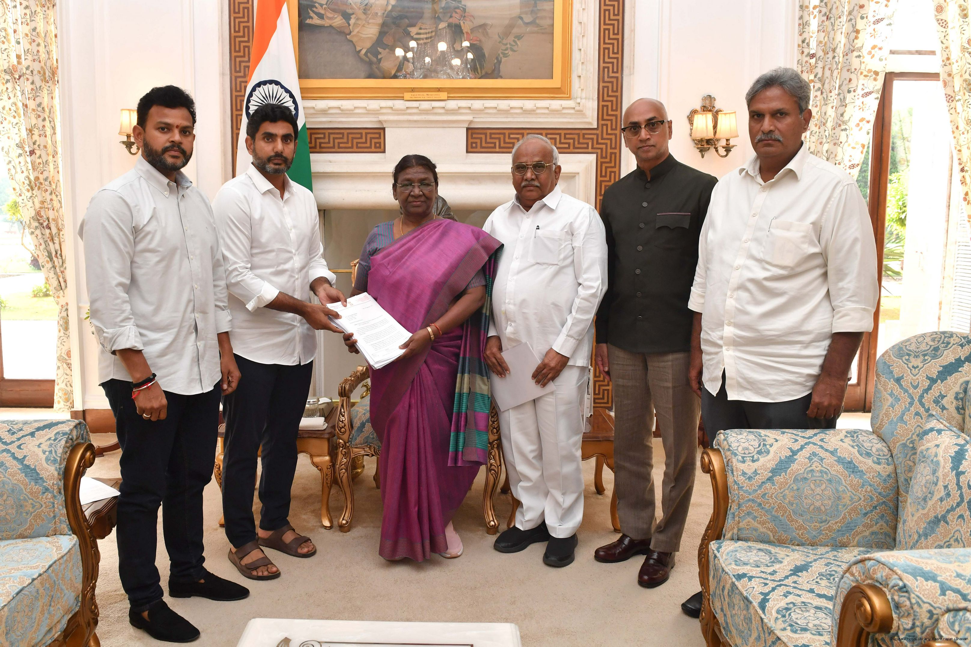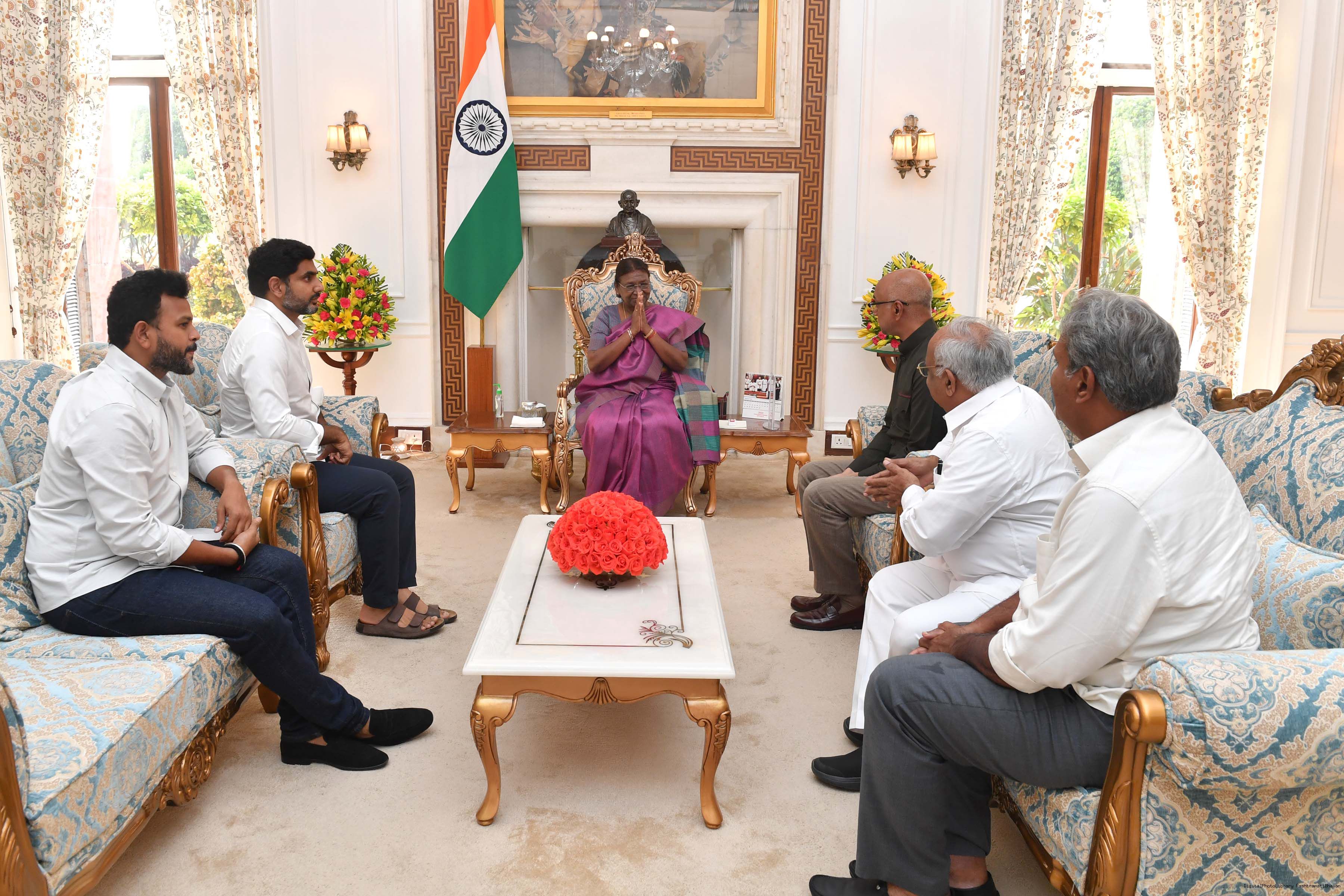 | Caption: | Shri Jayadev Galla Leader Telugu Desam Parliamentary Party along with others meeting with the President of India, Smt. Droupadi Murmu at Rashtrapati Bhavan on September 26, 2023. |