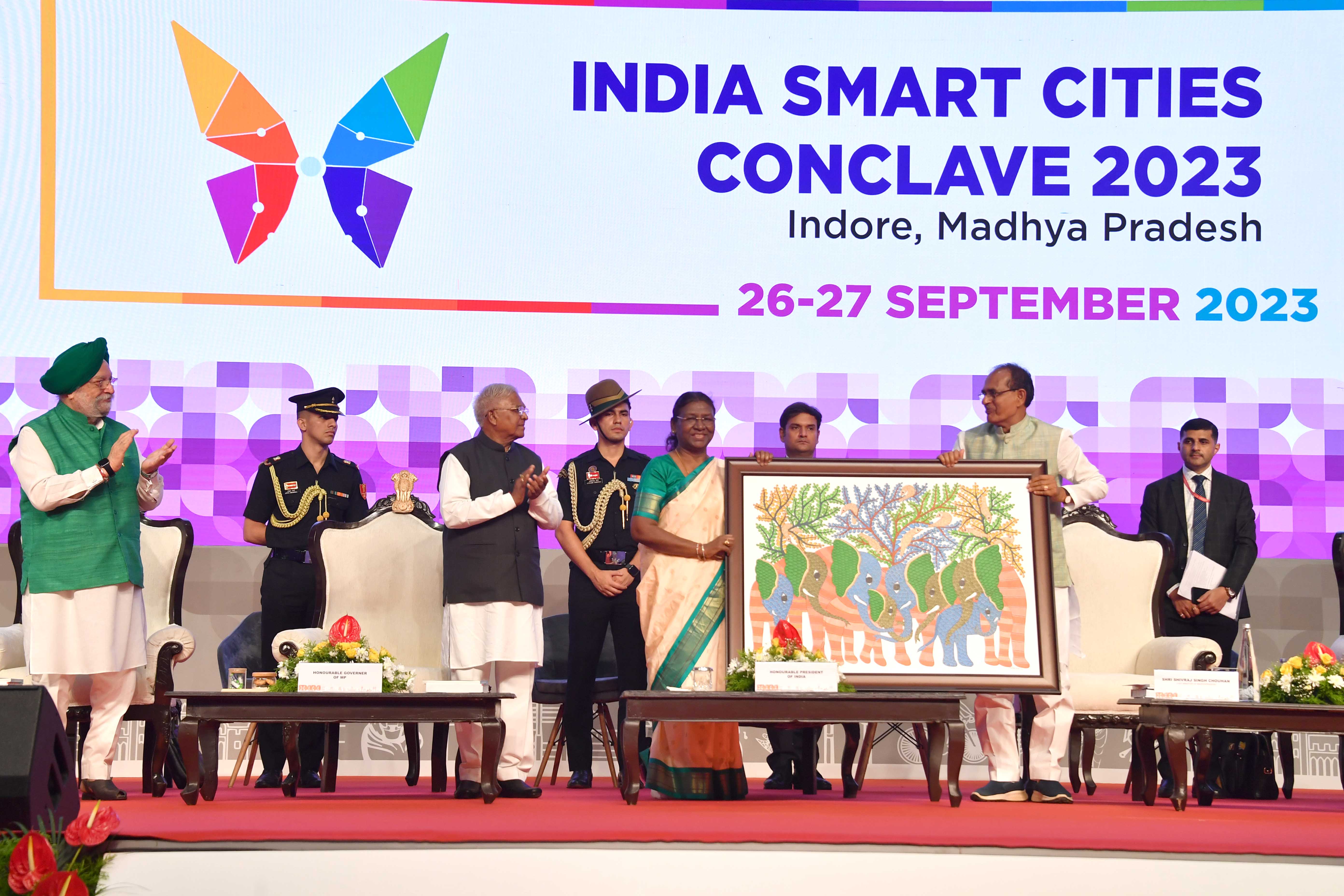 | Caption: | The President of India, Smt Droupadi Murmu graced the India Smart Cities Conclave 2023 at Indore, Madhya Pradesh on September 27, 2023. |