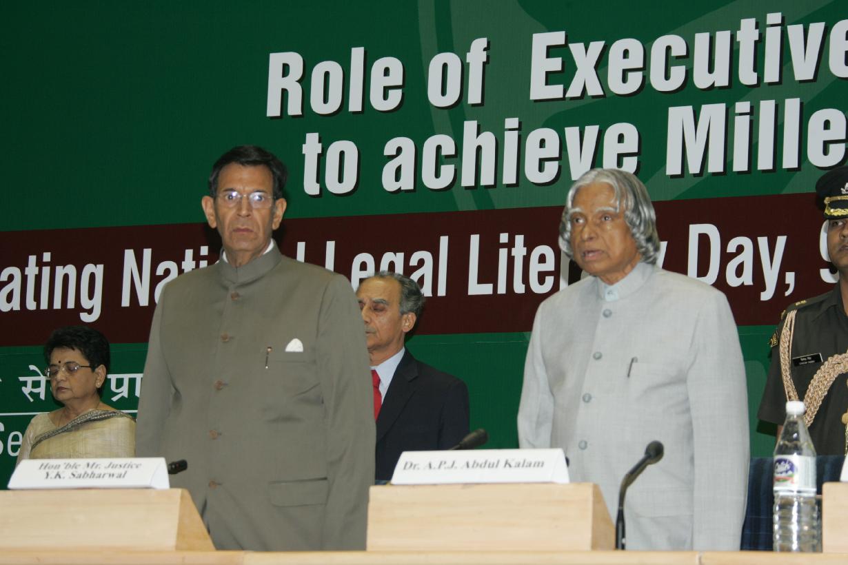 | Caption: | The President of India, Dr A P J Abdul Kalam participating in a National Conference on Legal Empowerment on the Occasion of National Legal Literacy Day at Vigyan Bhavan in New Delhi on Nov 9, 2005 |