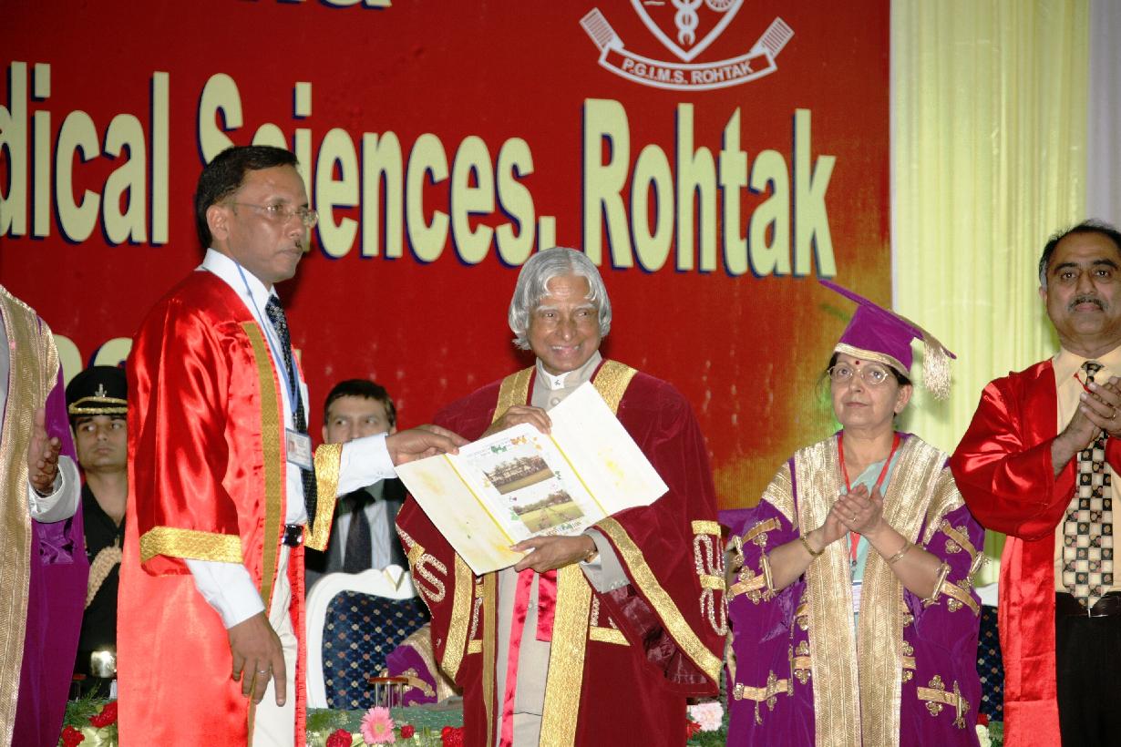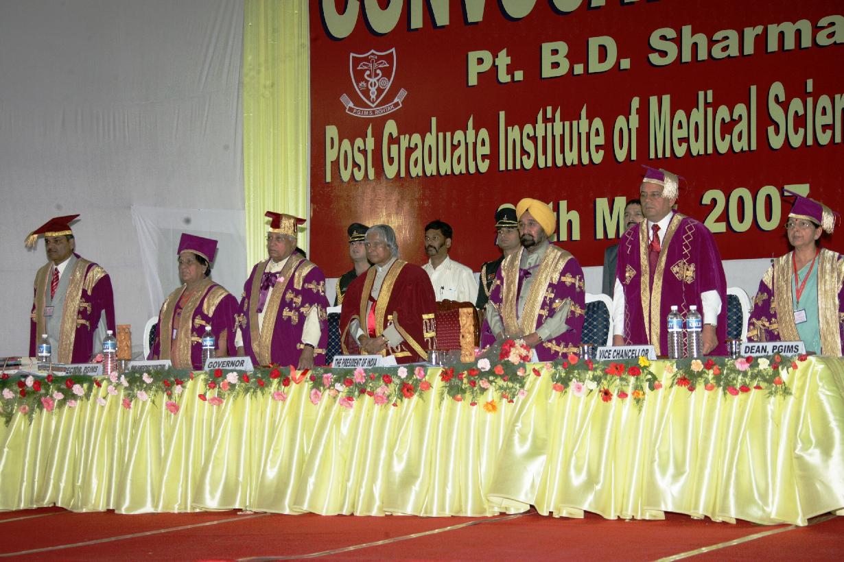 | Caption: | The President of India, Dr A P J Abdul Kalam participating in the Convocation of the PTBD Sharma Post Graduate Institute of Medical Sciences at Rohtak in Haryana on May 25, 2007 |