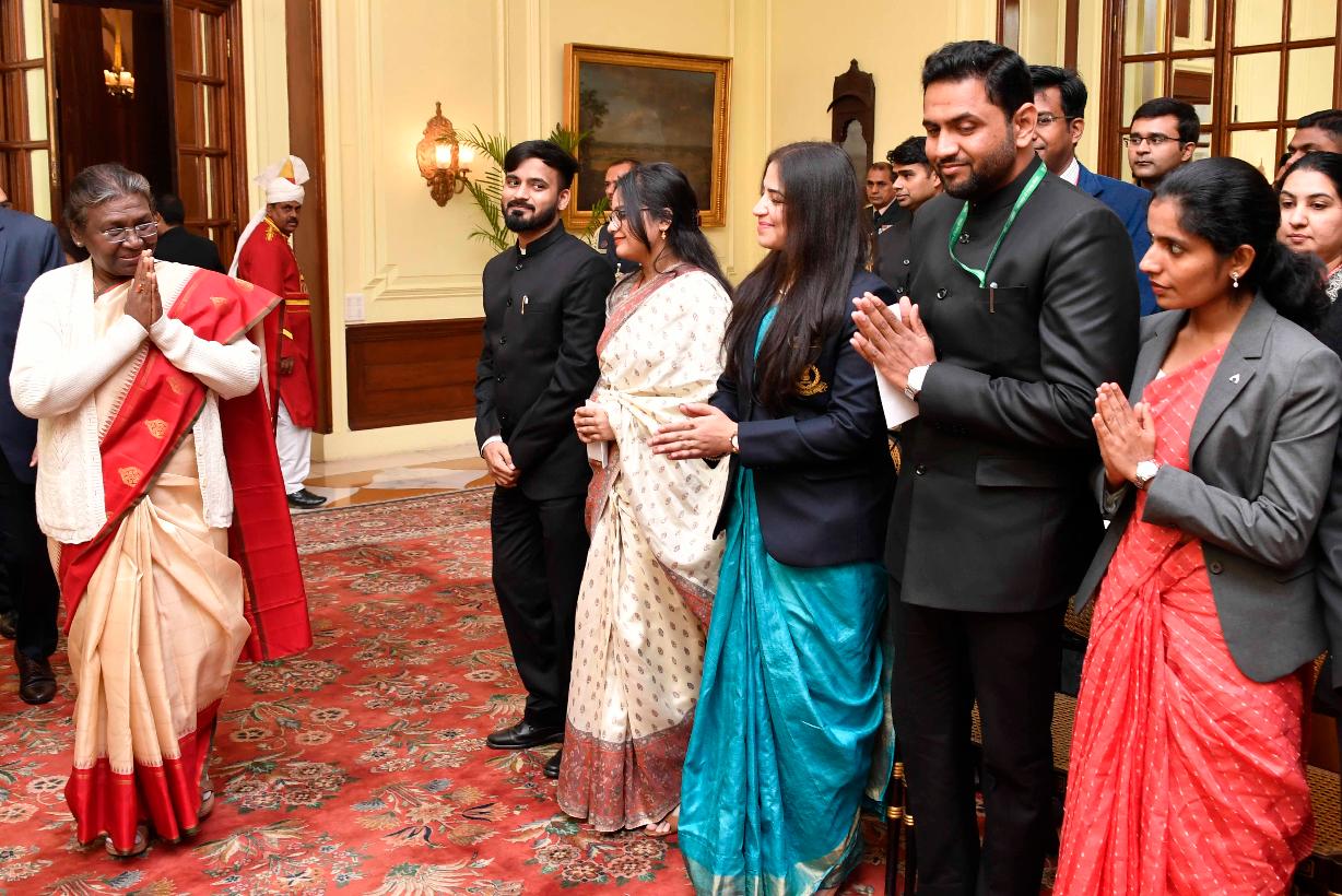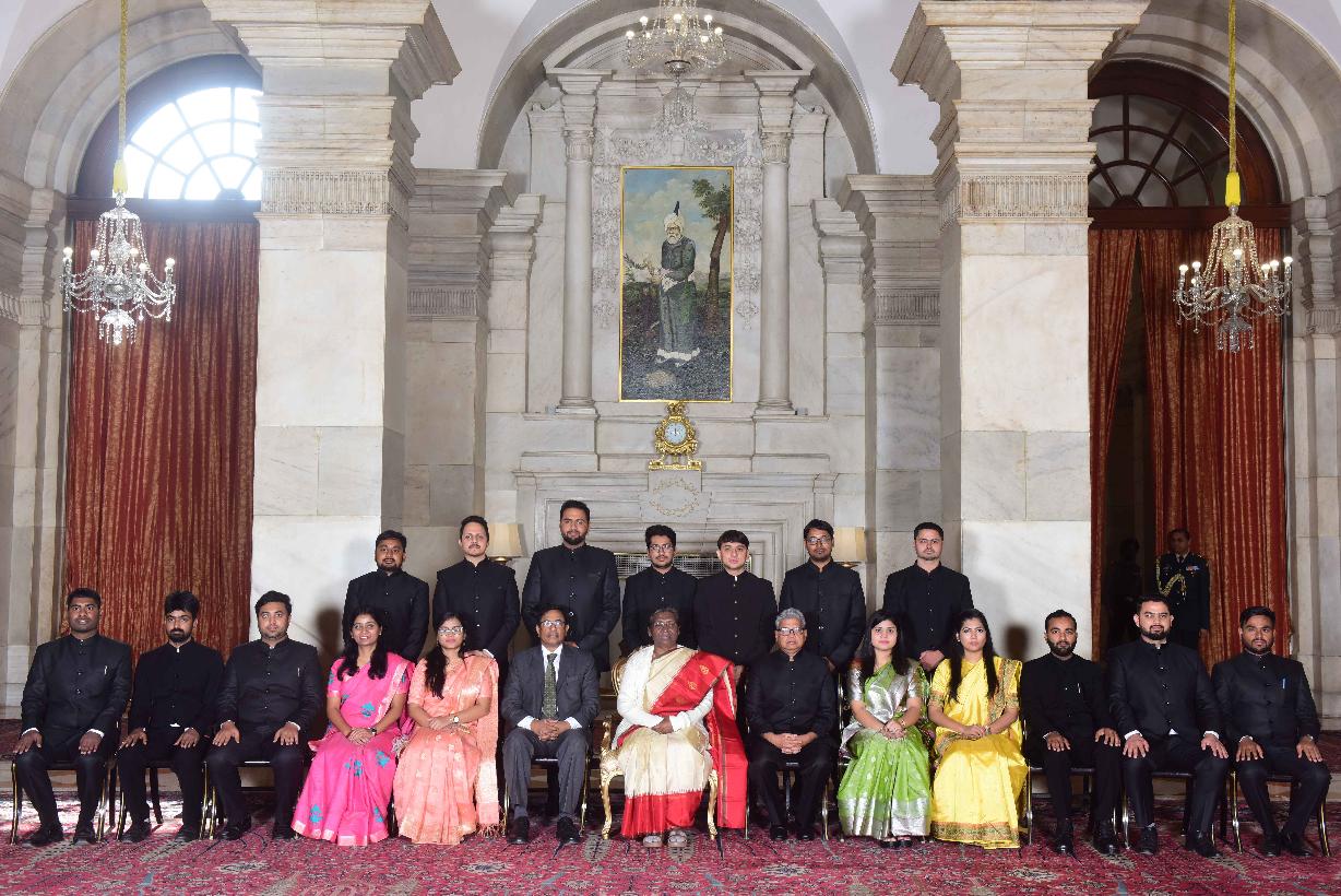 | Caption: | Officer Trainees of Indian Police Service, Indian Postal Service, Indian Railway Accounts Service and Indian Revenue Service and officers of Indian Radio Regulatory Service called on the President of India, Smt. Droupadi Murmu, at Rashtrapati Bhavan on December 07, 2022. |